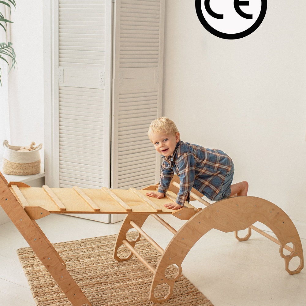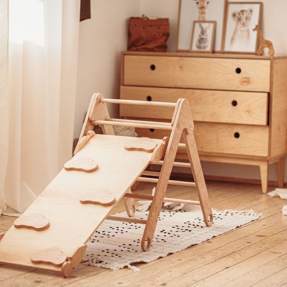 Climbing Set of 3 items – Arch + Foldable Triangle + Ramp ladder/slide, Montessori furniture, Toddler climber, First christmas gift