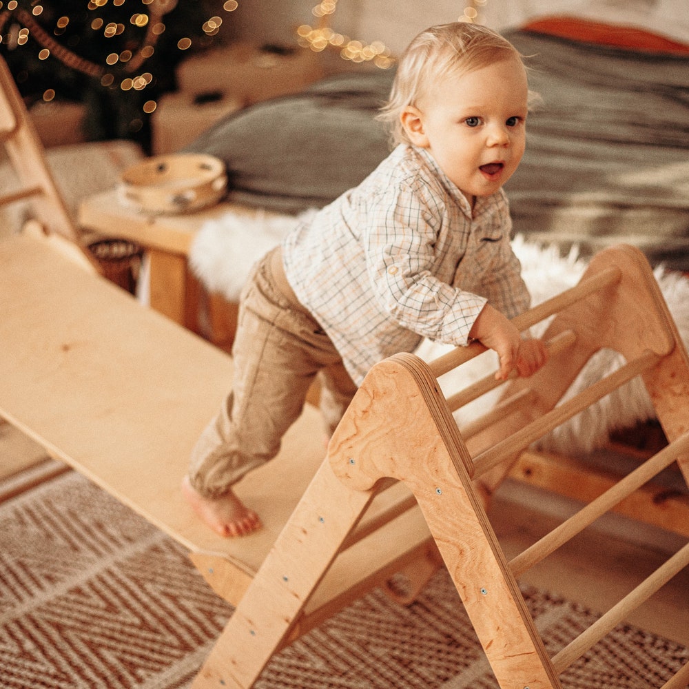 The Wooden Foldable Climbing Triangle provides an unique opportunity to meet toddlers developmental needs in a safe and supervised way.