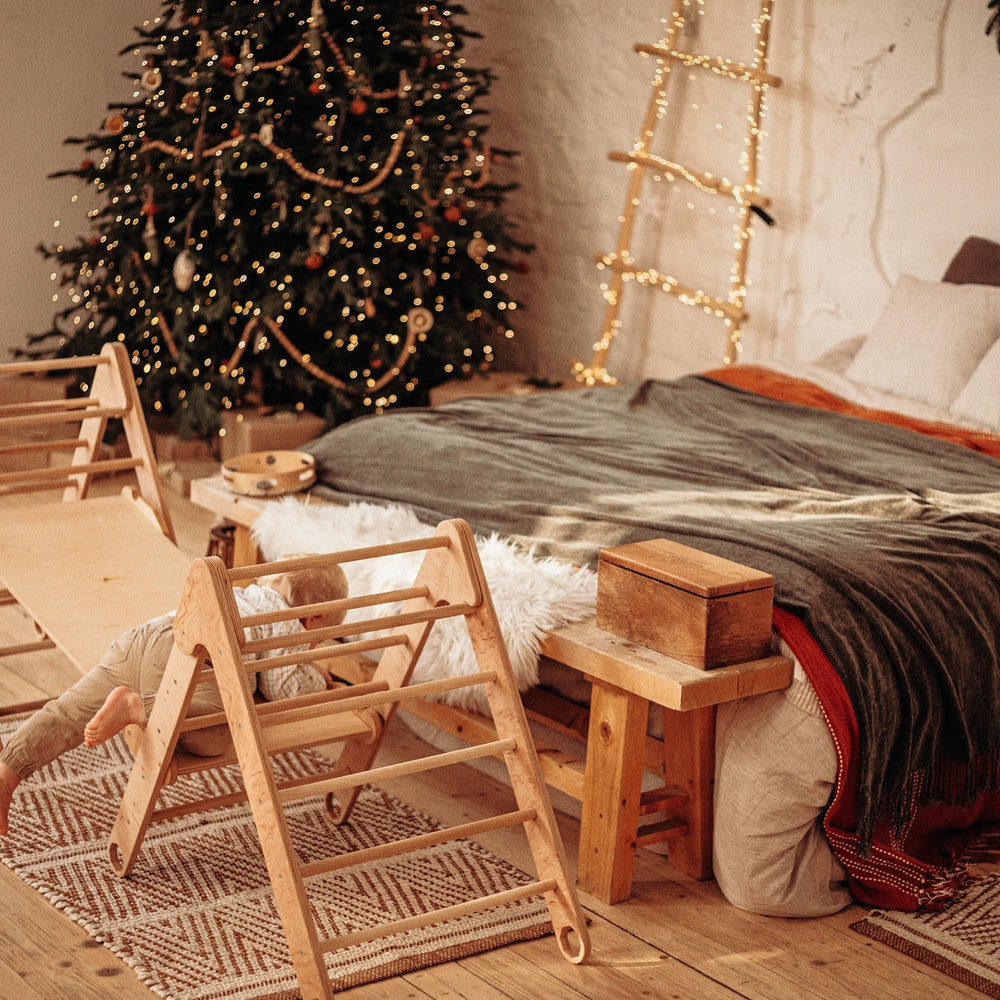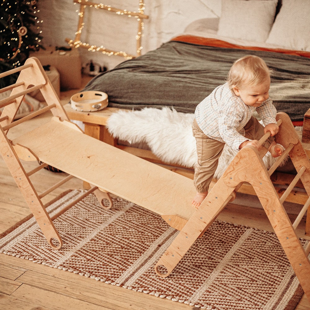 Climbing Set of three items: two Foldable Triangle and Ramp with slide, Wood play gym, Montessori toddler toys Baby furniture