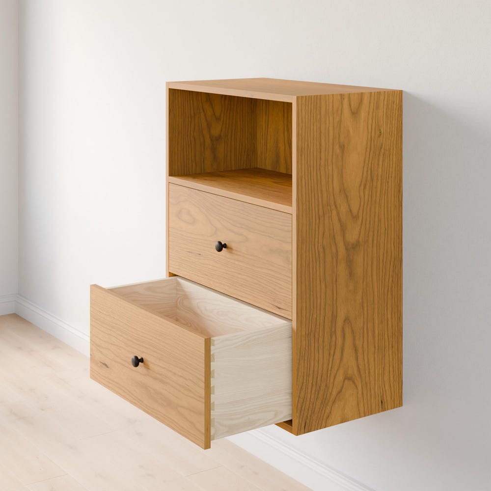 Built from premium grade cabinet plywood with real hardwood veneer. Drawers are solid Maple with dovetail construction, hung on under-mount soft close premium slides for full-extension.