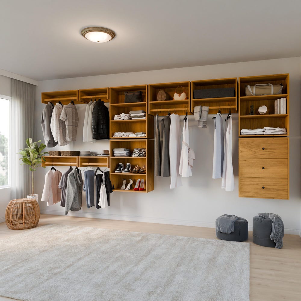 Our modular shelf and drawer system arrives fully assembled with easy to follow install instructions. Hung in minutes, these racks are amazingly strong and will elevate any space. Combine with our Clothes hanger shelves for a complete closet collection. If our 5 sizes do not quite fit your space, please contact us for customization.
