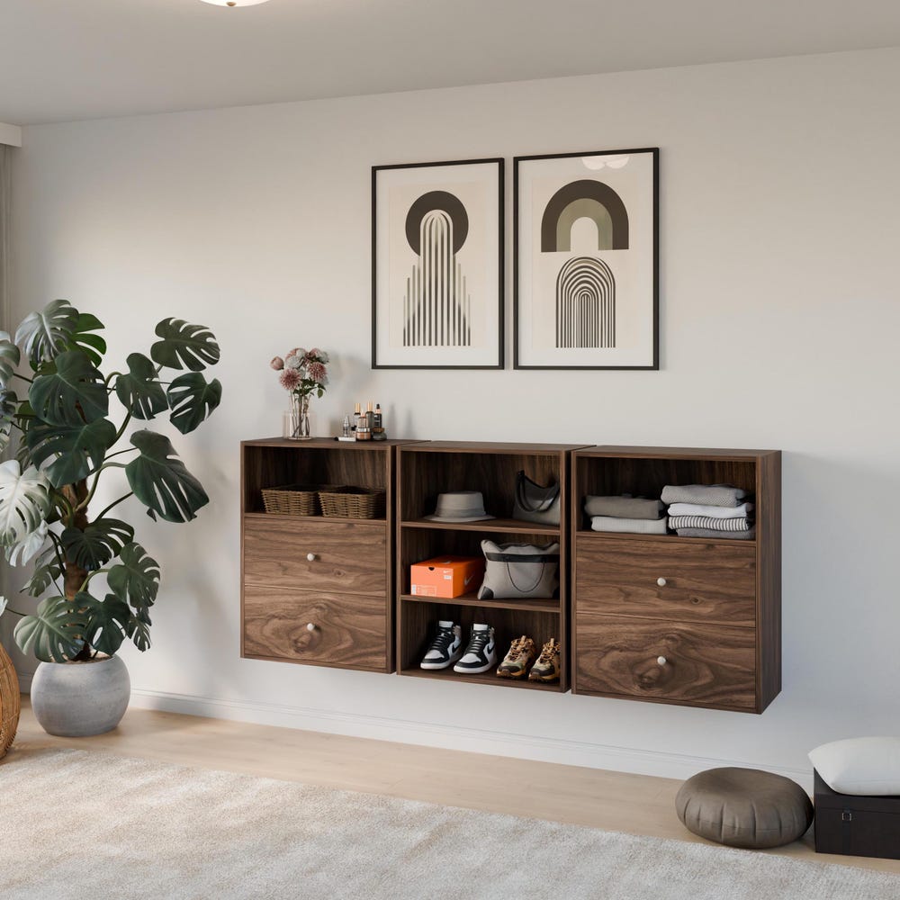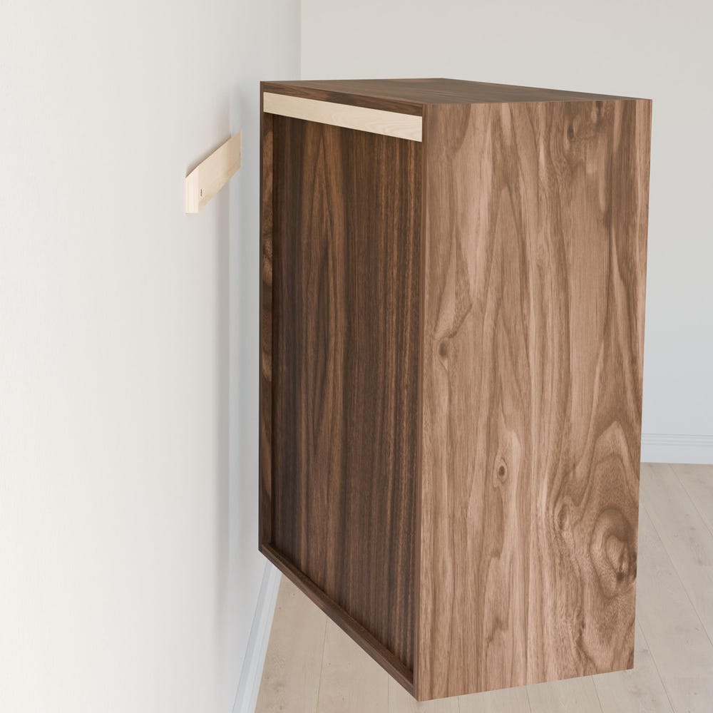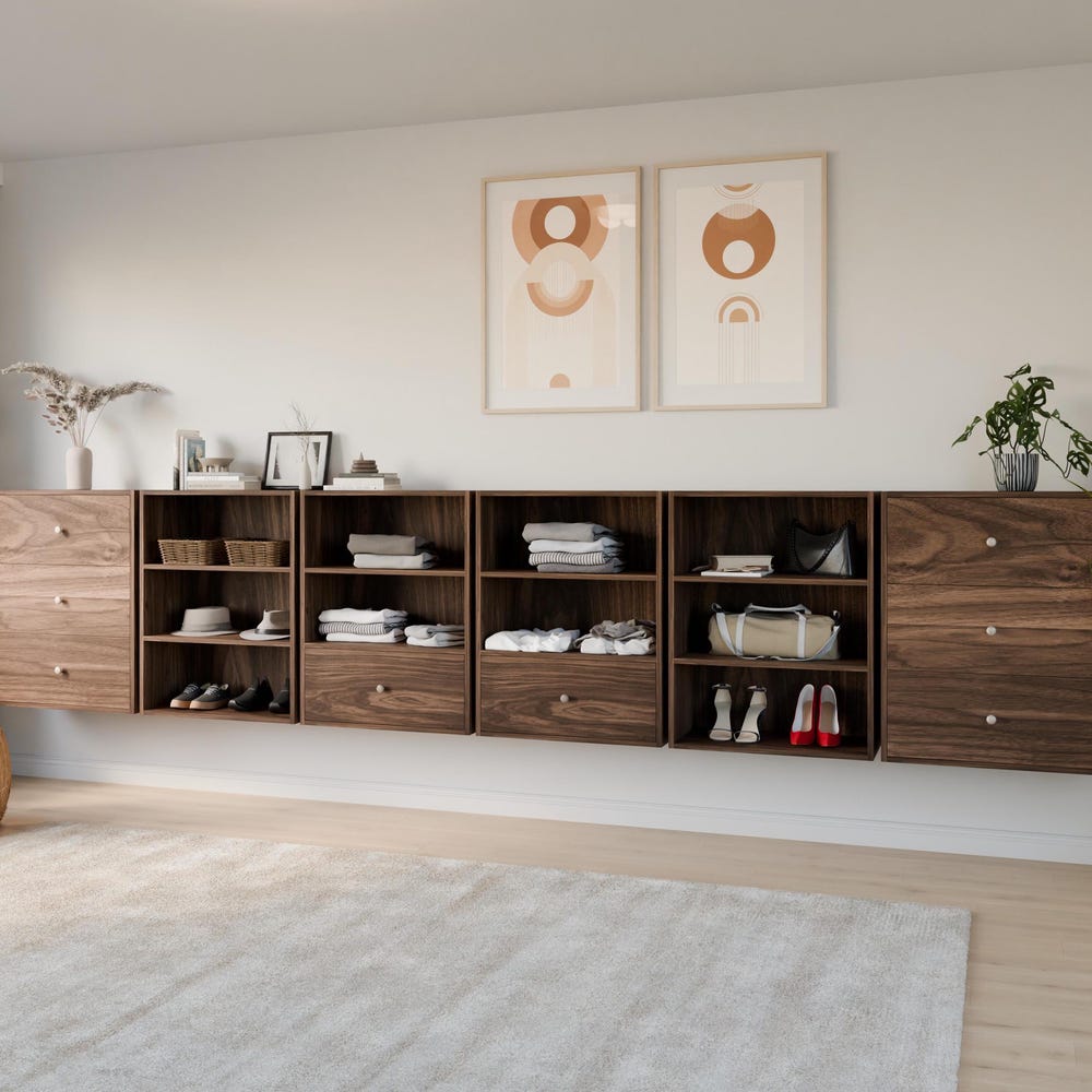 Our modular shelf and drawer system arrives fully assembled with easy to follow install instructions. Hung in minutes, these racks are amazingly strong and will elevate any space. Combine with our Clothes hanger shelves for a complete closet collection. If our 5 sizes do not quite fit your space, please contact us for customization.