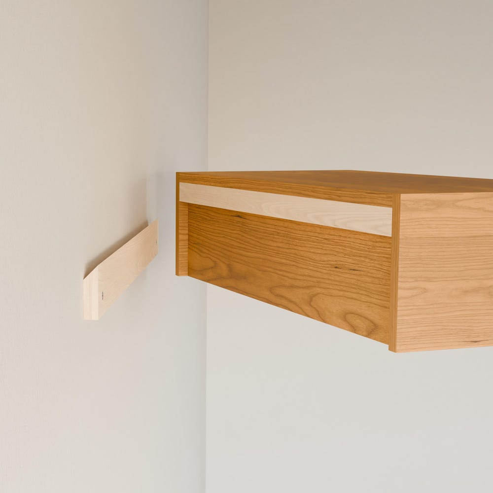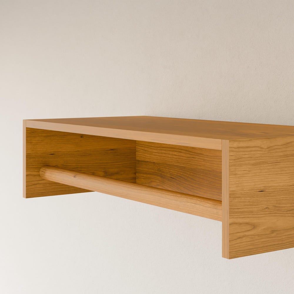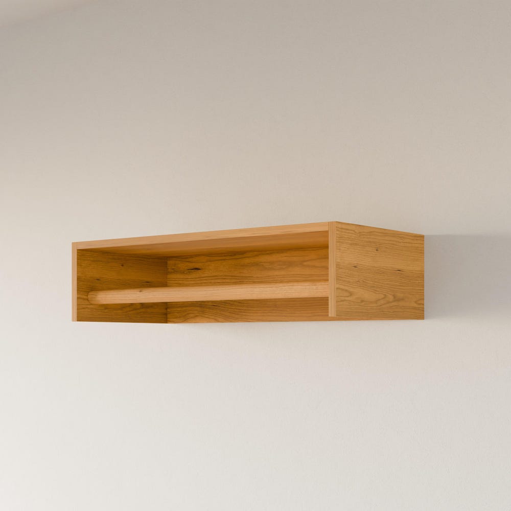 Built from premium grade cabinet plywood with real hardwood veneer. Hanger rods are solid Cherry. Our integrated mounting cleat is invisible once installed and is easily moved if needed. Finished with clear hard wax oil for a durable finish and natural color.