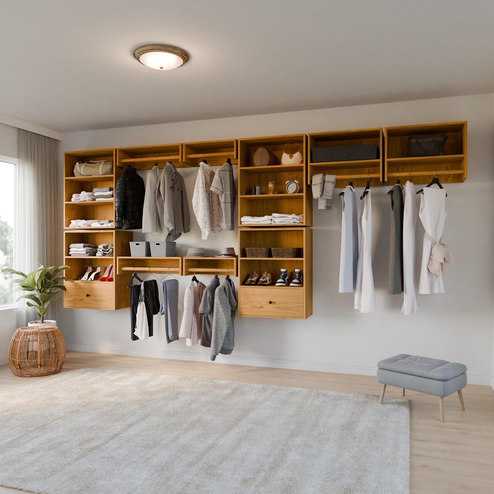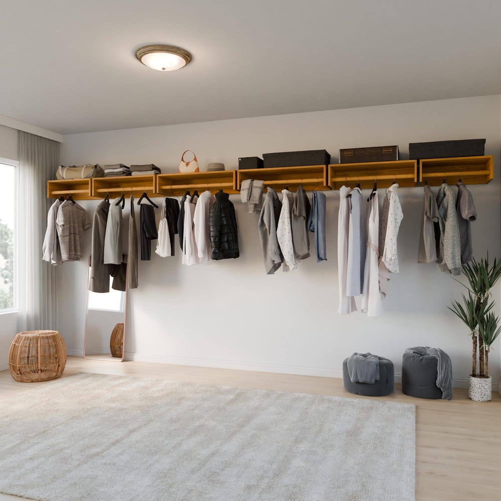 Our modular closet hanger arrives fully assembled with easy to follow install instructions. Hung in minutes, these racks are amazingly strong and will elevate any space. Combine with our shelves and drawers for a complete closet collection. If our 5 sizes do not quite fit your space, please contact us for customization.