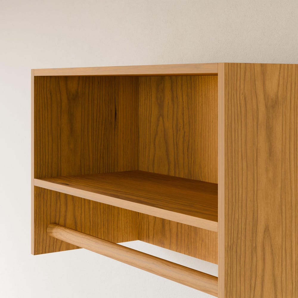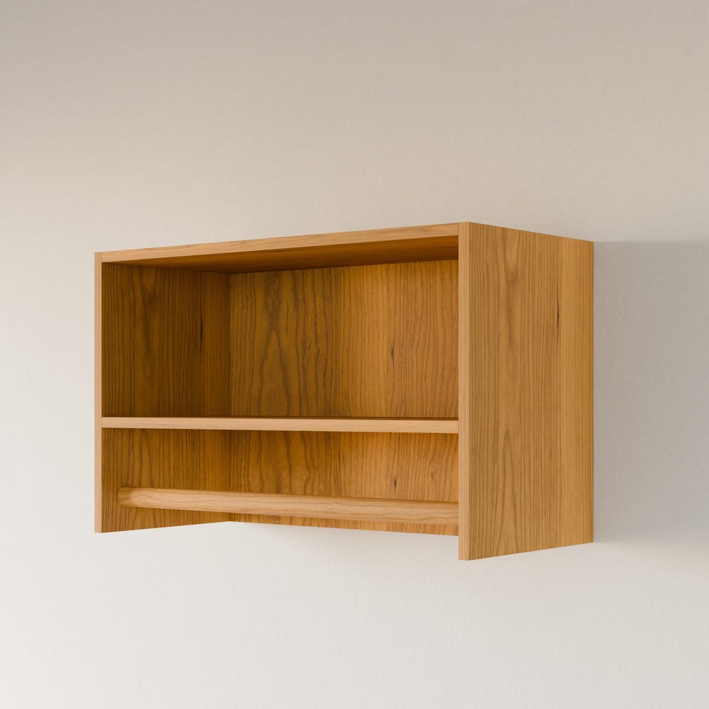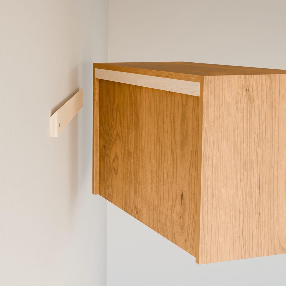 Built from premium grade cabinet plywood with real hardwood veneer. Hanger rods are solid Cherry. Our integrated mounting cleat is invisible once installed and is easily moved if needed. Finished with clear hard wax oil for a durable finish and natural color.
