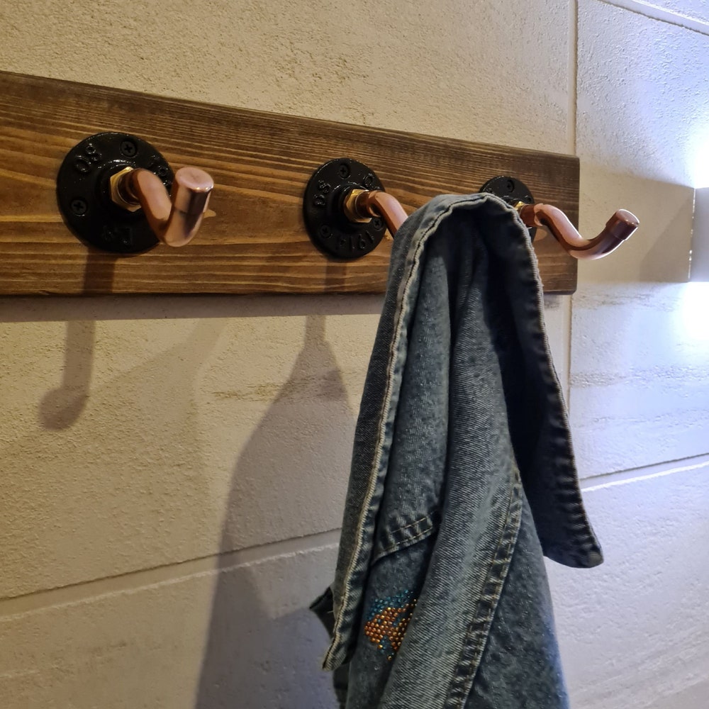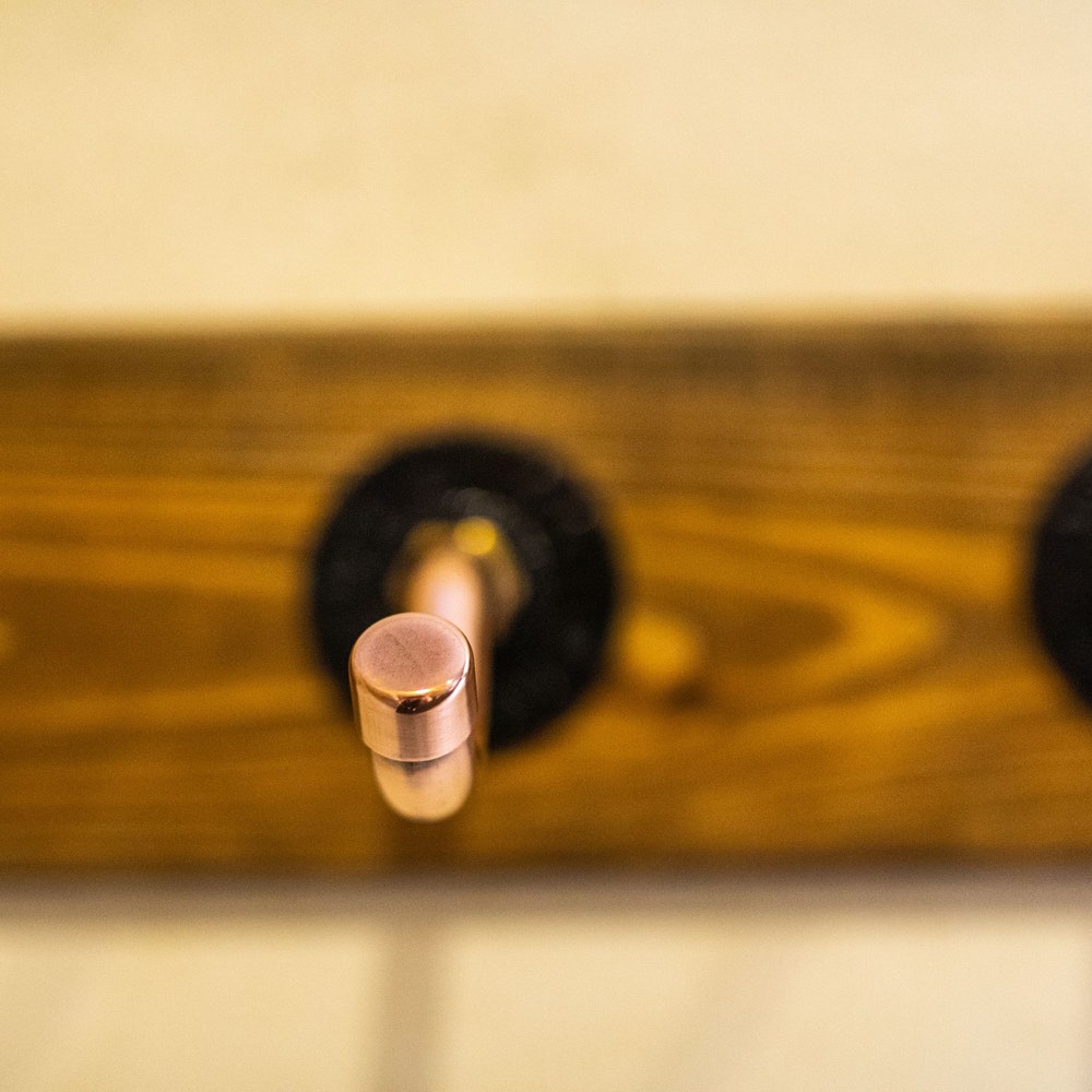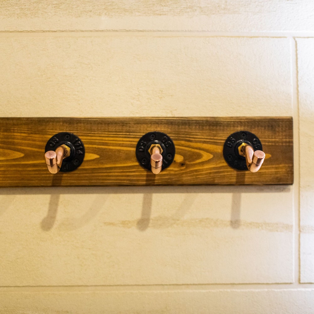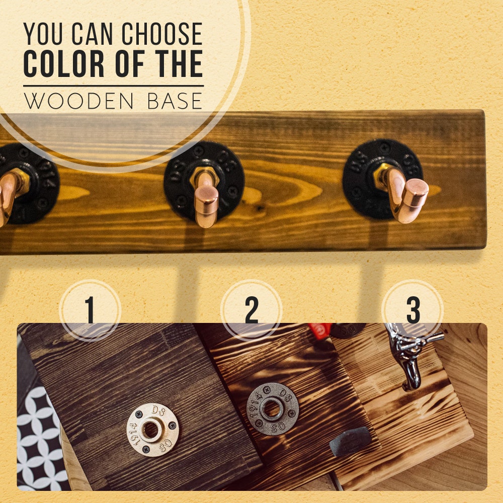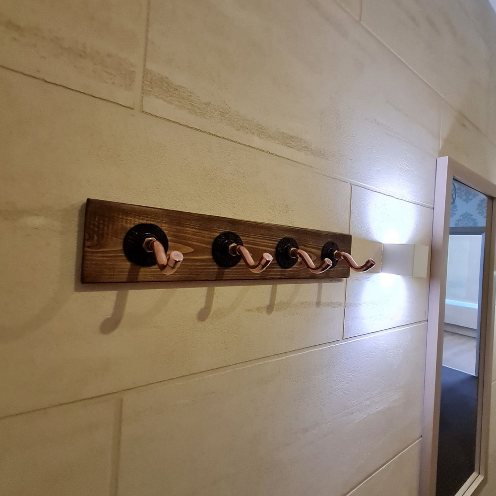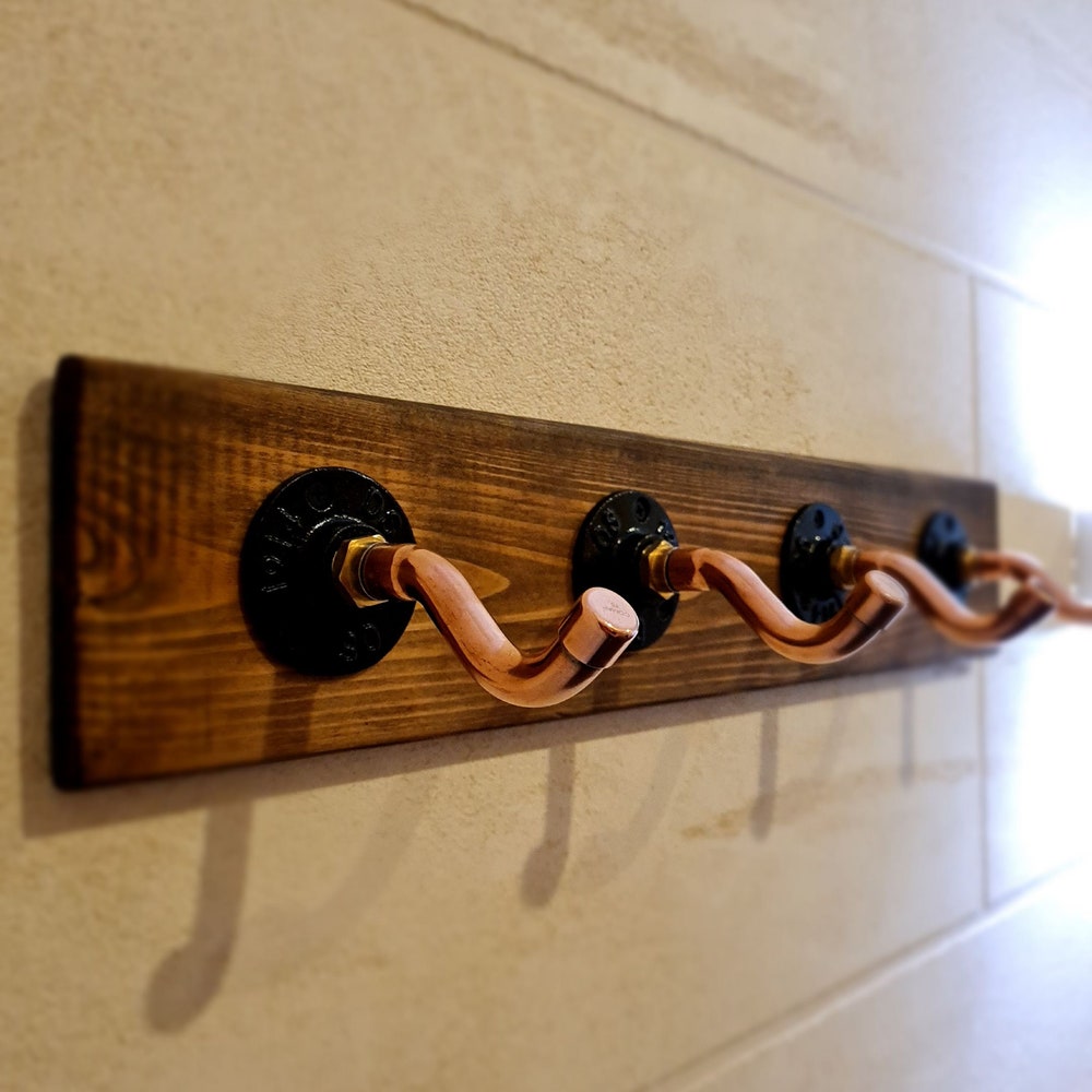 Clothes Hooks Holder – Rustic Wood and Copper Coat Rack, Wall-Mounted Hanging Hook for Entryway Organization, Housewarming Gift