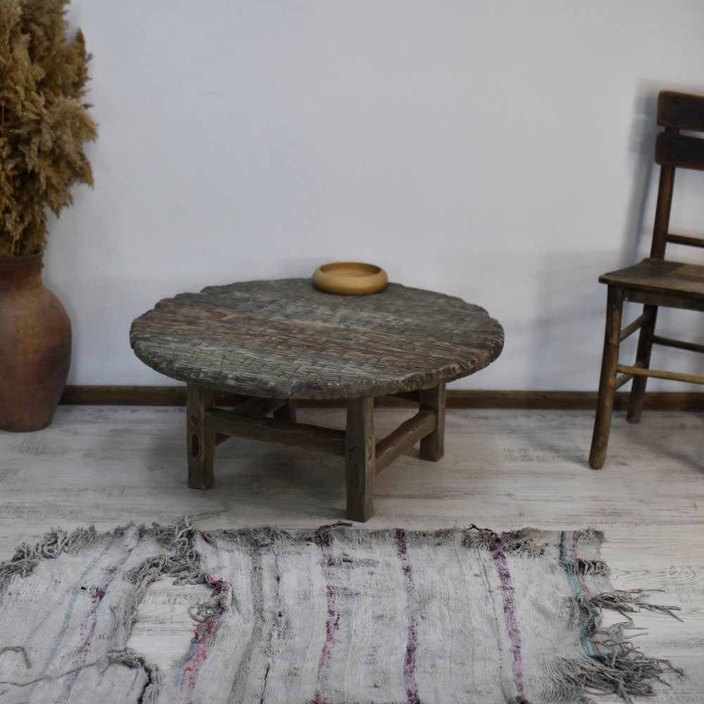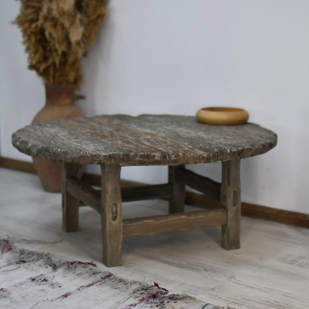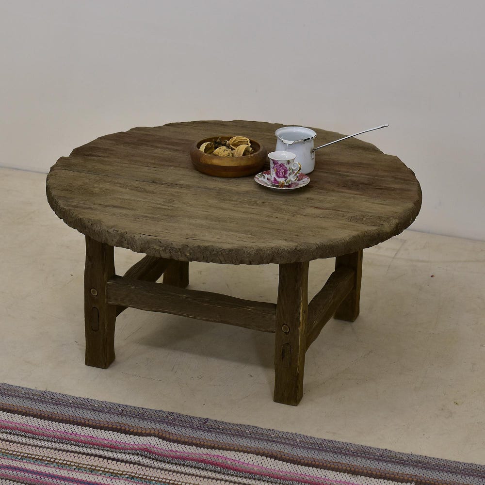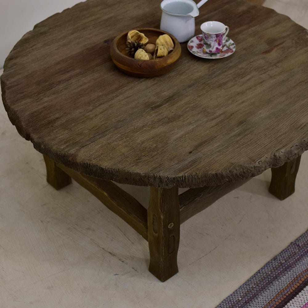 Coffee table rustic round for living room live edge side table wooden rustic mid-century farmhouse furniture — vintage-like barnwood