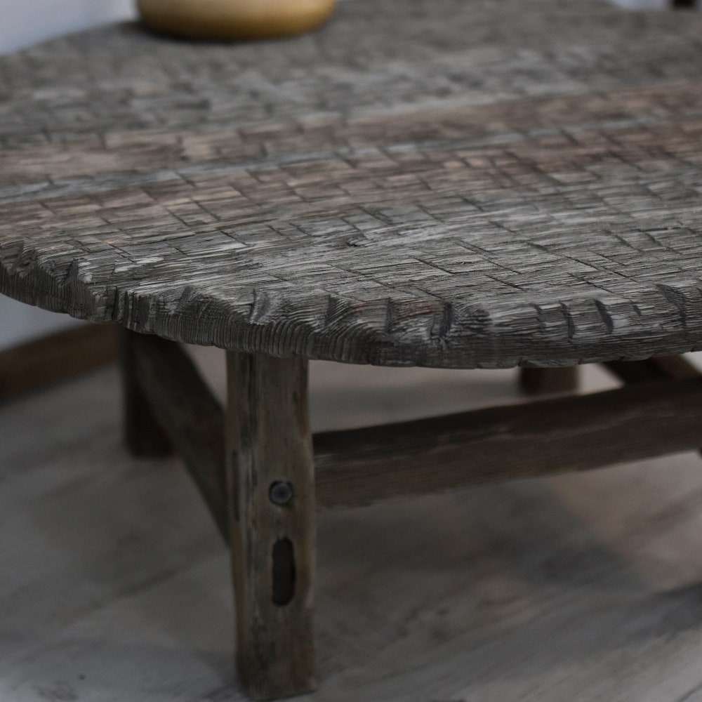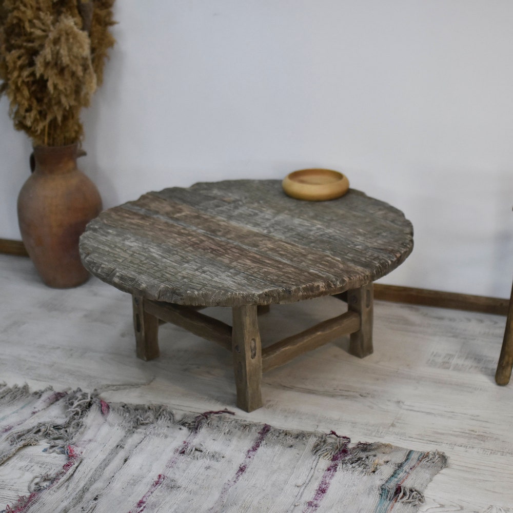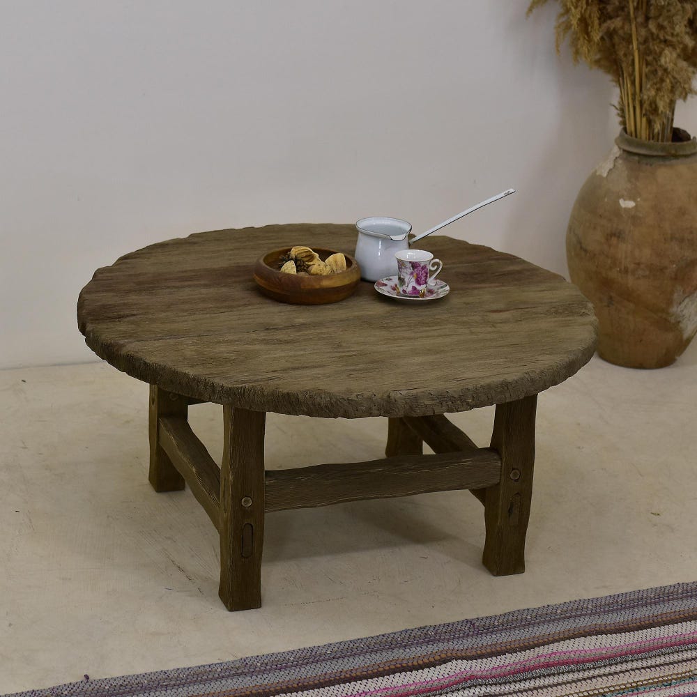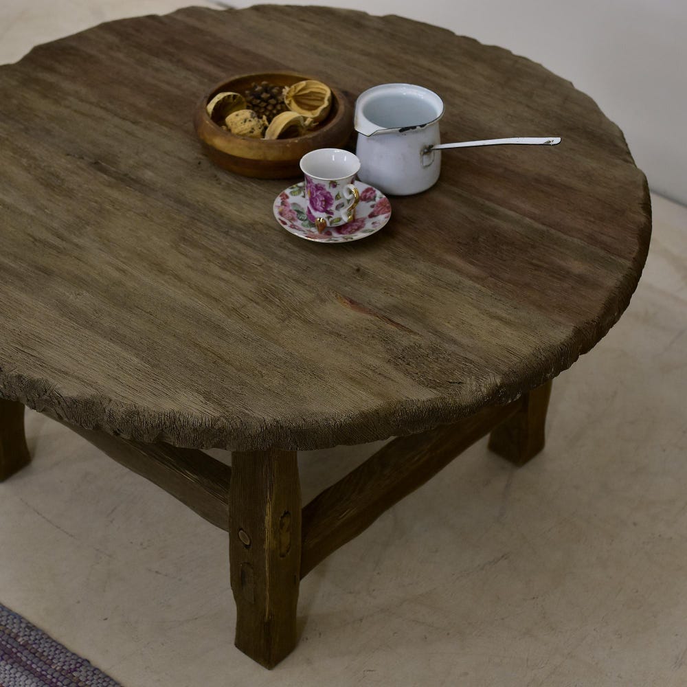 Coffee table rustic round for living room live edge side table wooden rustic mid-century farmhouse furniture — vintage-like barnwood
