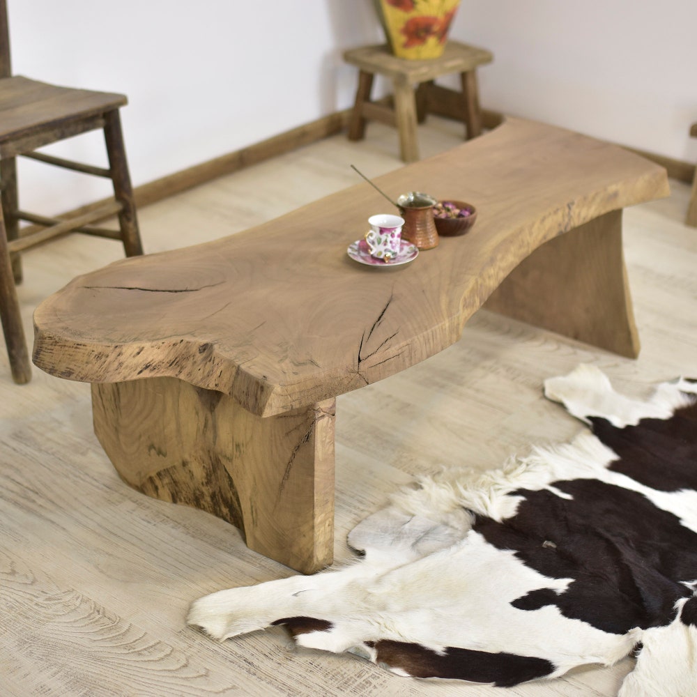 This attractive and unique handcrafted rustic walnut wood coffee table is a stylish addition to the design of your home or office.