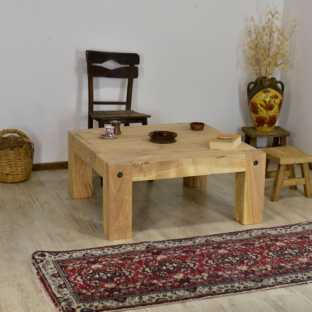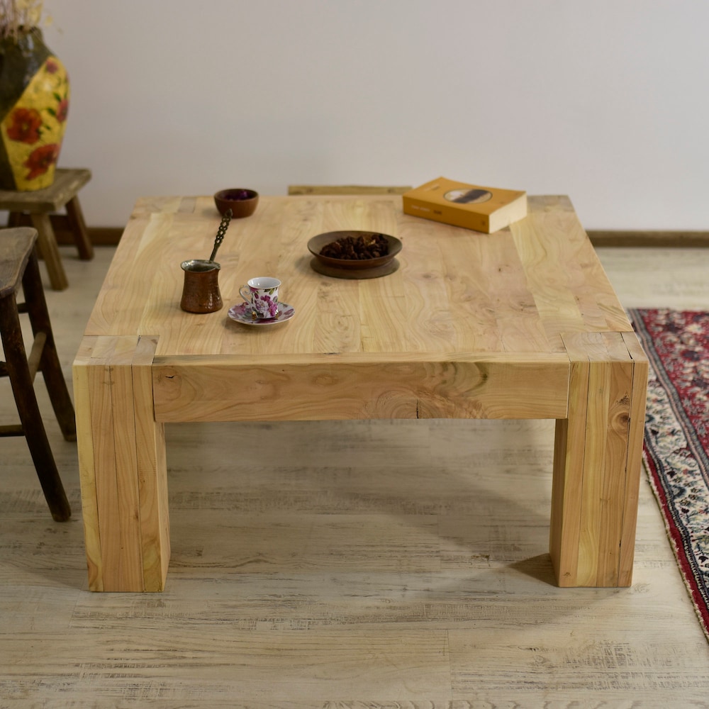 Coffee table solid wood handmade large wood smooth rectangle vintage barn wood gift square for living room mid century farmhouse furniture.