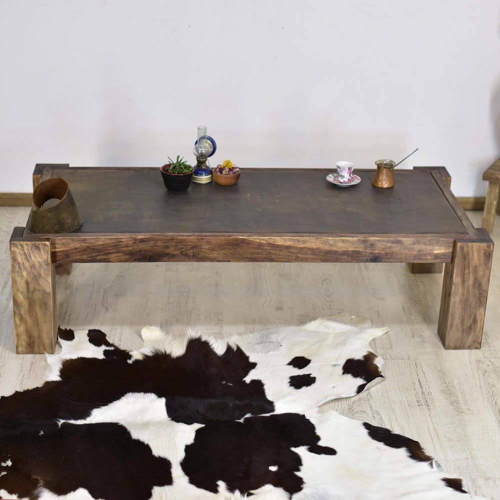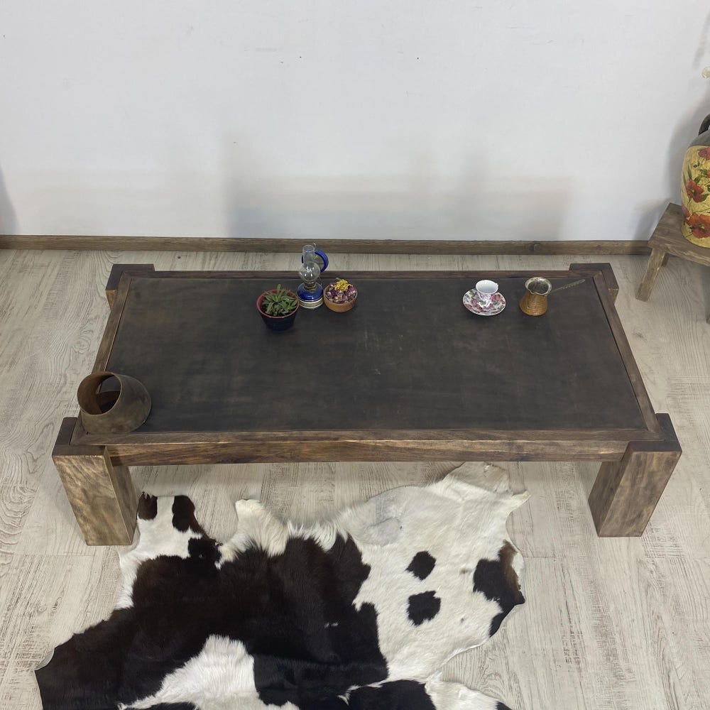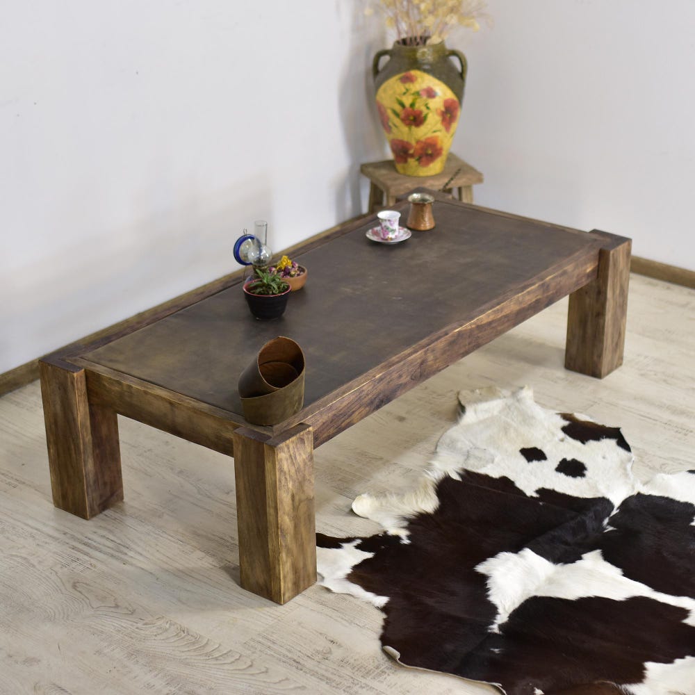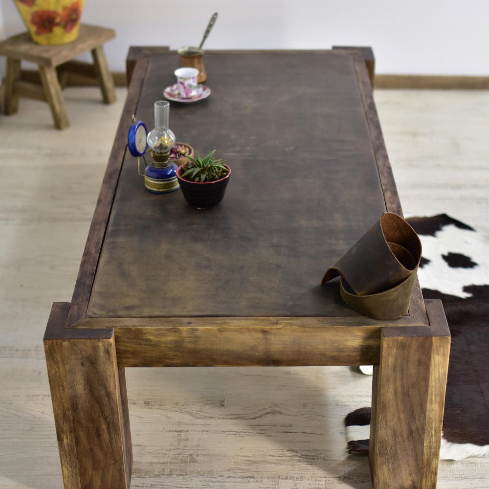Coffee Table Table Leather Handmade Mid-Century Wood Living Room Walnut Wood Side Table Wood Rustic MidCentury Farmhouse Furniture Rectangle