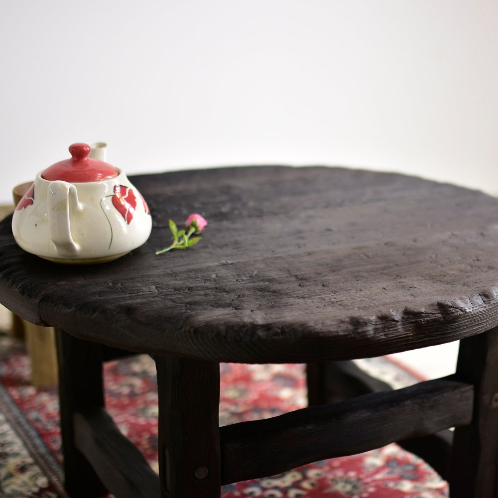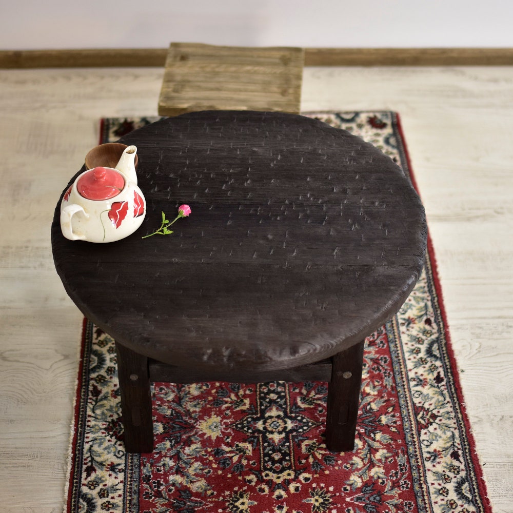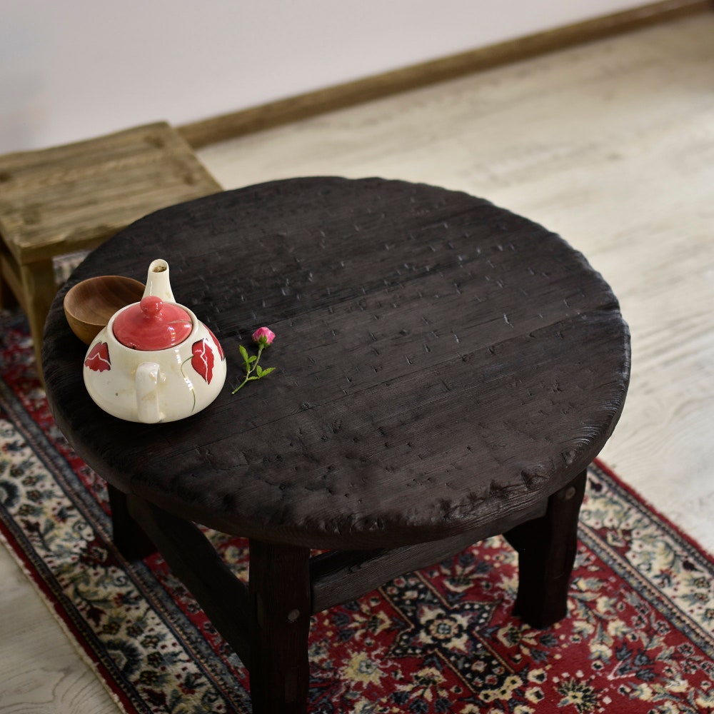 Coffee Table Yakisugi side table Sugi Ban Japanese furniture Handmade Live Edge Side Round Coffee Table Wood Rustic Mid-Century Farmhouse