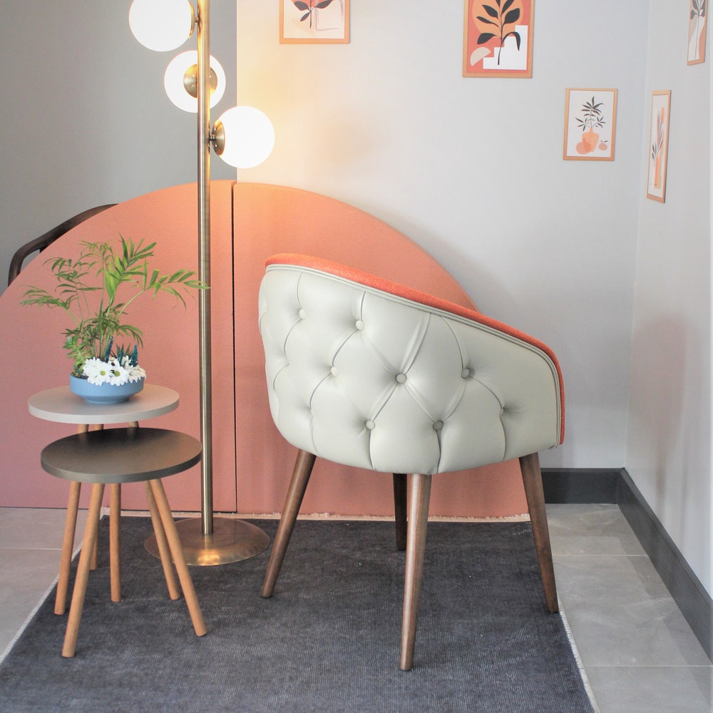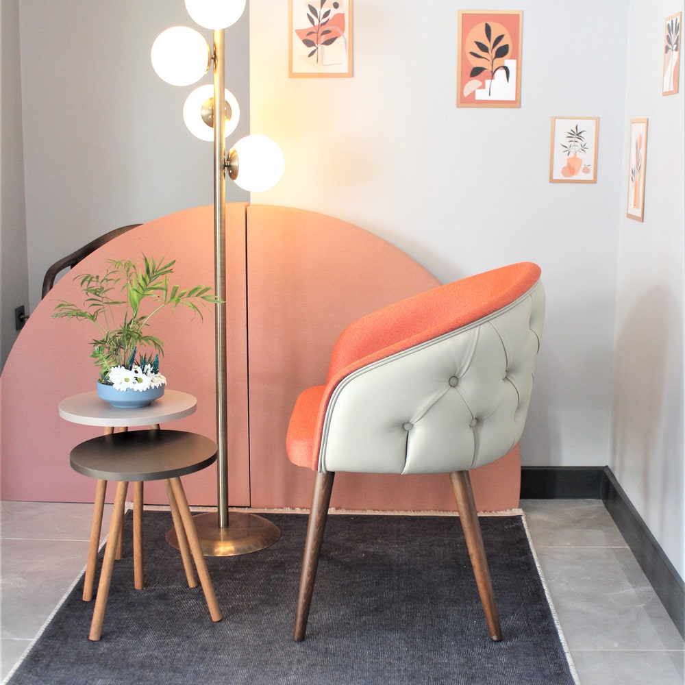This chair is modern style and handmade dining chair.Its legs and skeleton are made of hornbeam wood. Foot colors can be changed. It can be made in natural, walnut and black colors. Fully customized fabric colors are available. Our products are completely personalized and made to order. You choose the fabric and body color of […]