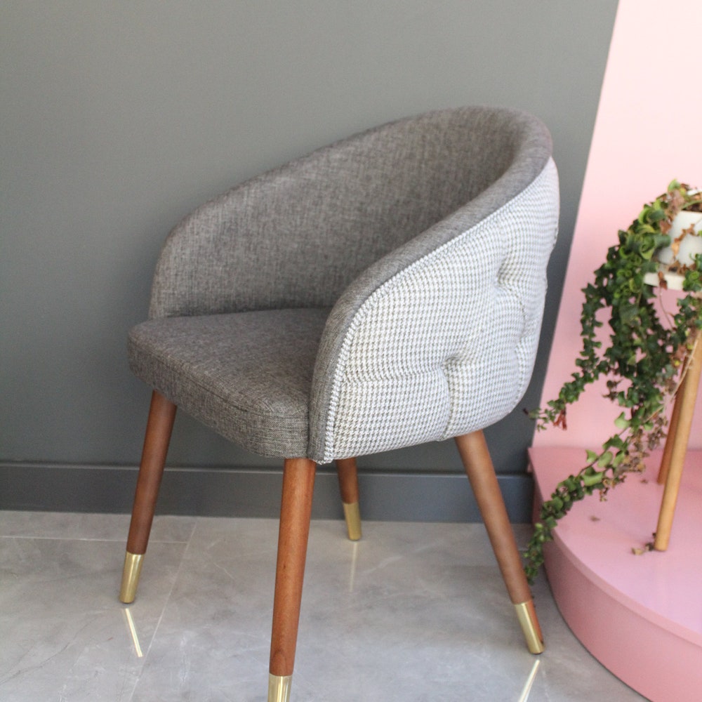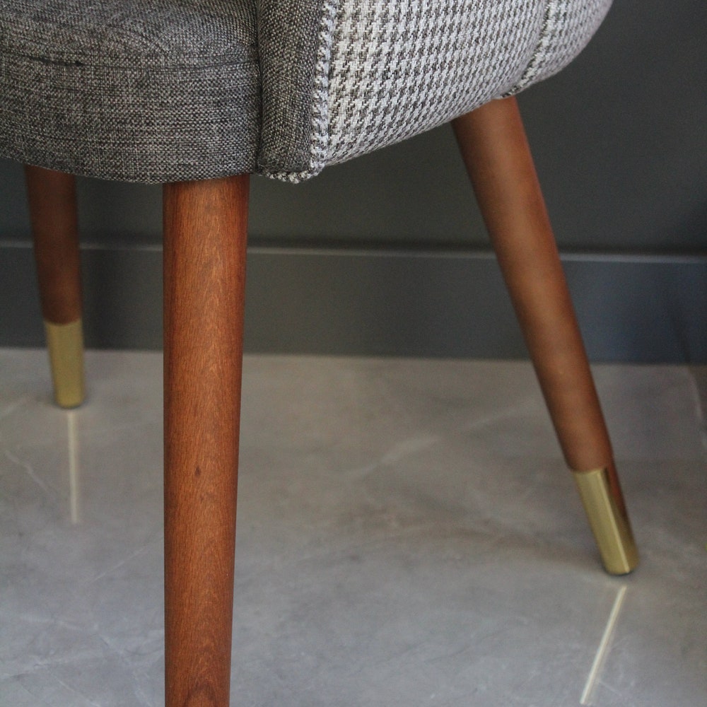 Its legs and skeleton are made of hornbeam wood. Foot colors can be changed. It can be made in natural, walnut and black colors. Fully customized fabric colors are available.
