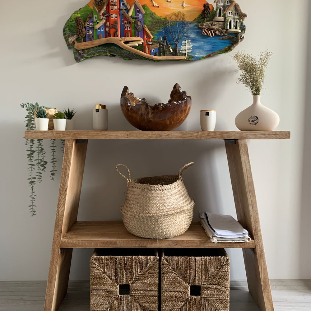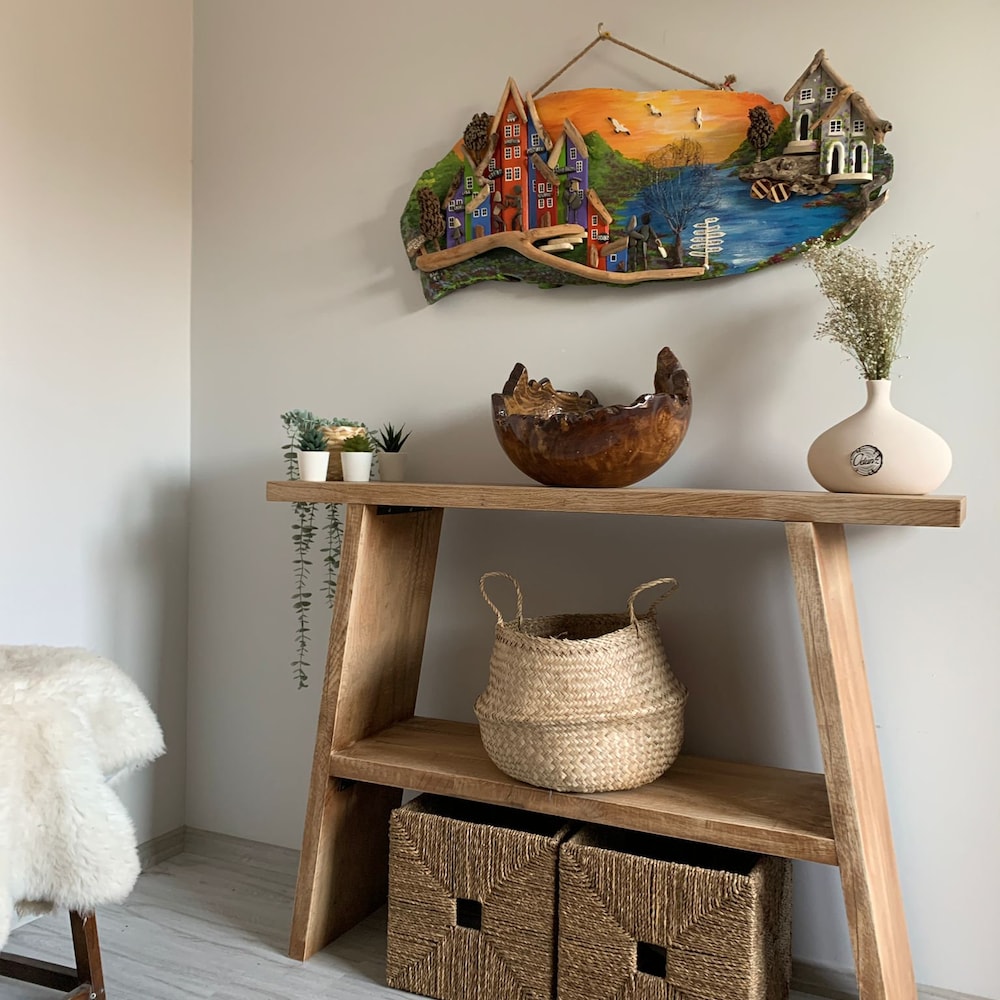 The handmade table is made with a natural, rustic style that will make a difference in your home. It is known for its modern and rustic look, which can be used in the living room, entryway, or even in the bathroom with peace of mind.