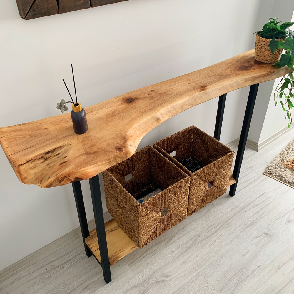 Console/sofa/Entrway table Rustic custom reclaimed Wood/Wooden/Solid/Live edge/slab luxury end/side/foyer/entry/kitchen/coffee/sehpa/ table