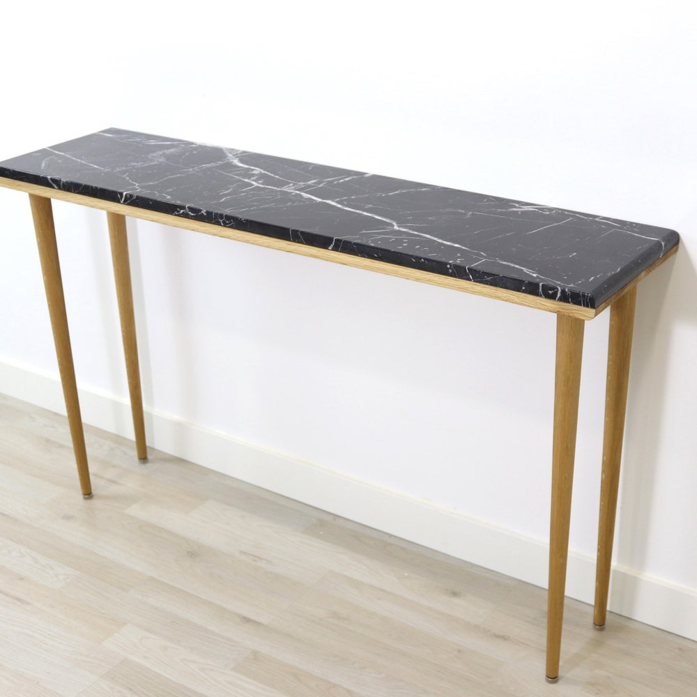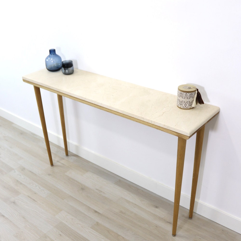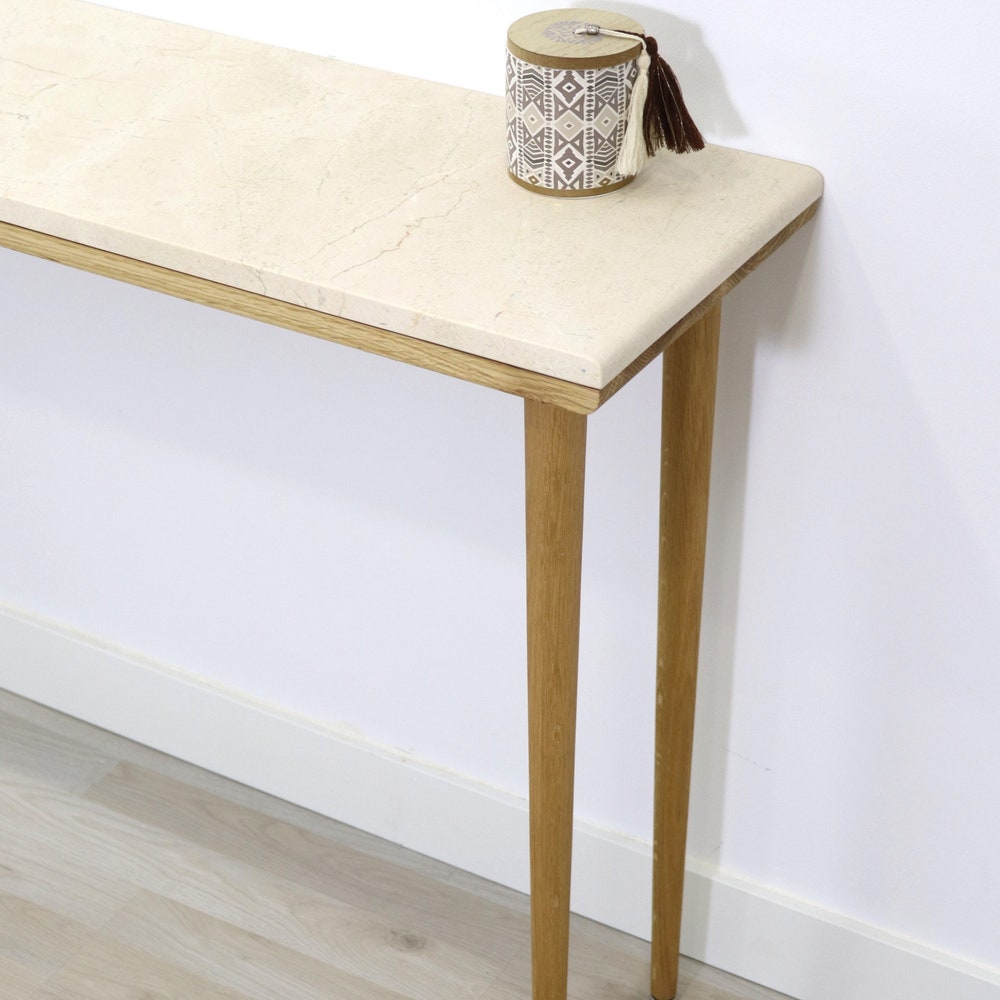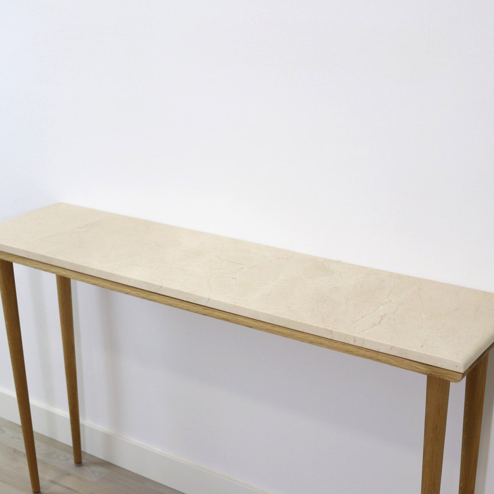 Console table narrow with 4 Legs in solid american Oak and Marble top