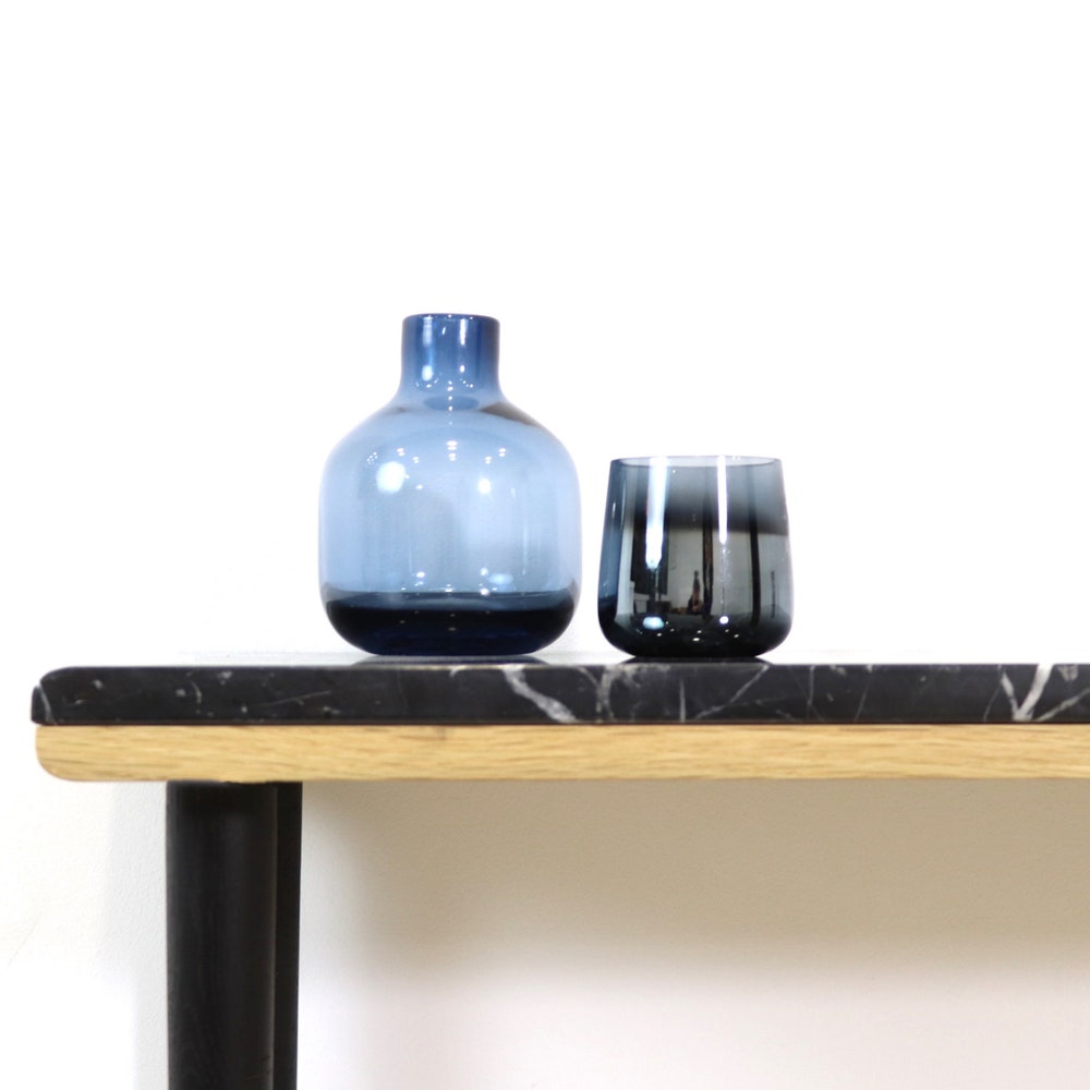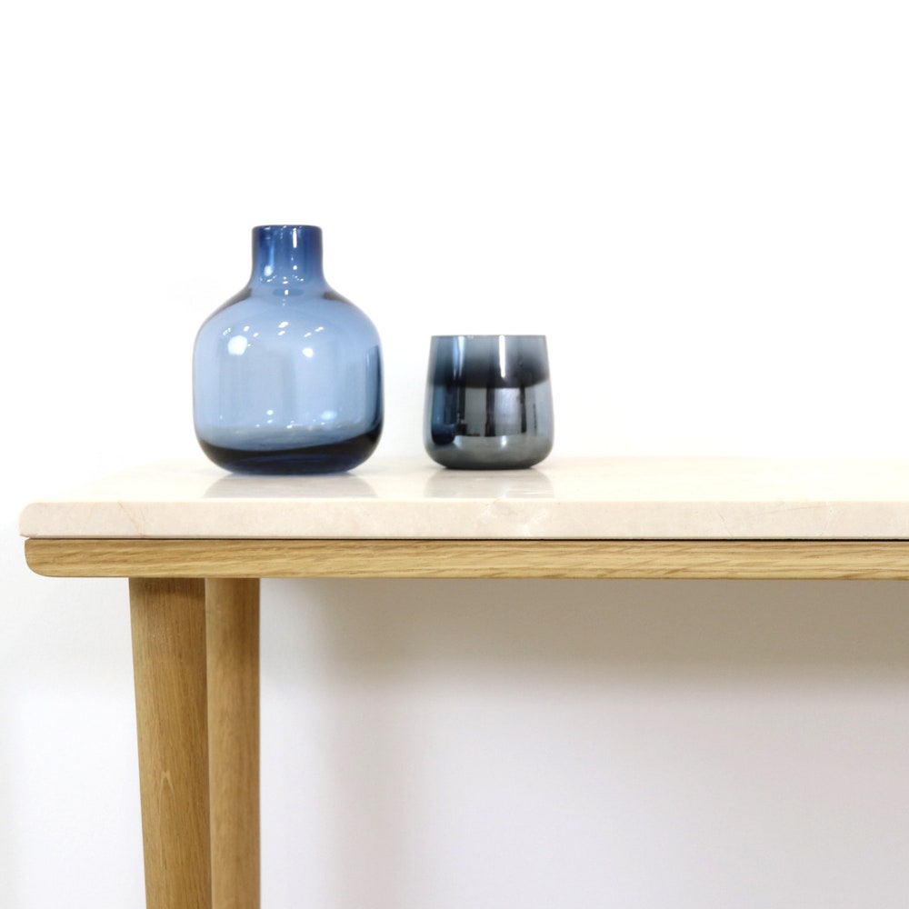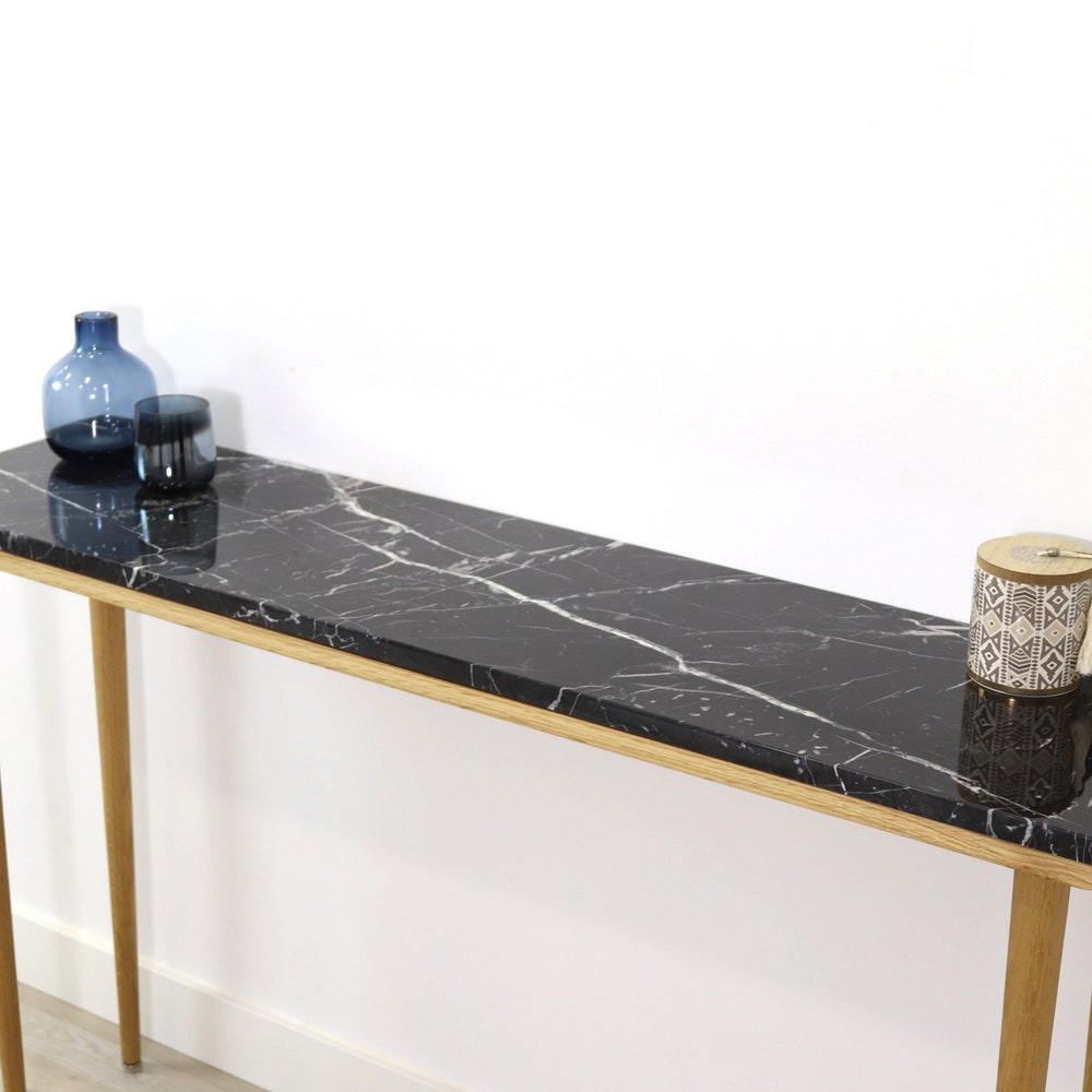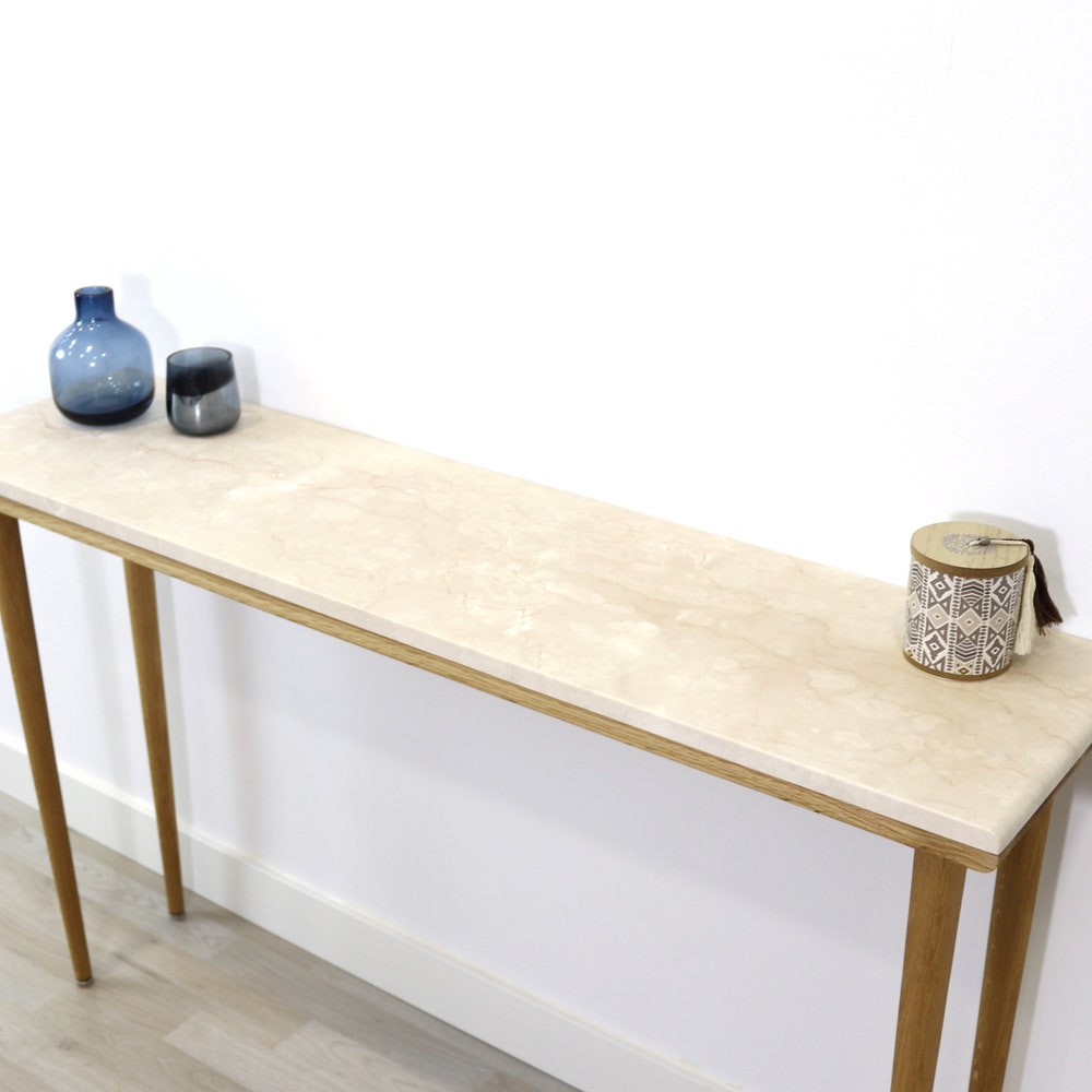 Console table narrow with 4 Legs in solid american Oak and Marble top