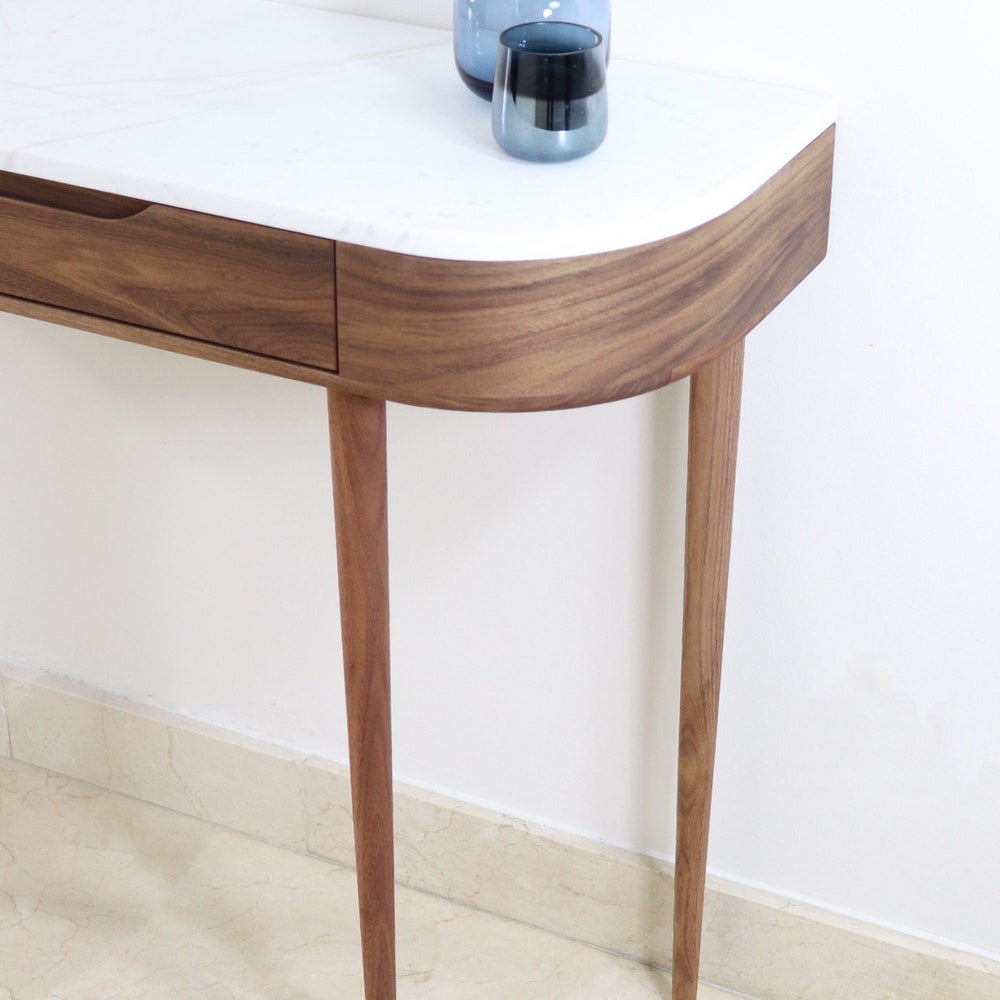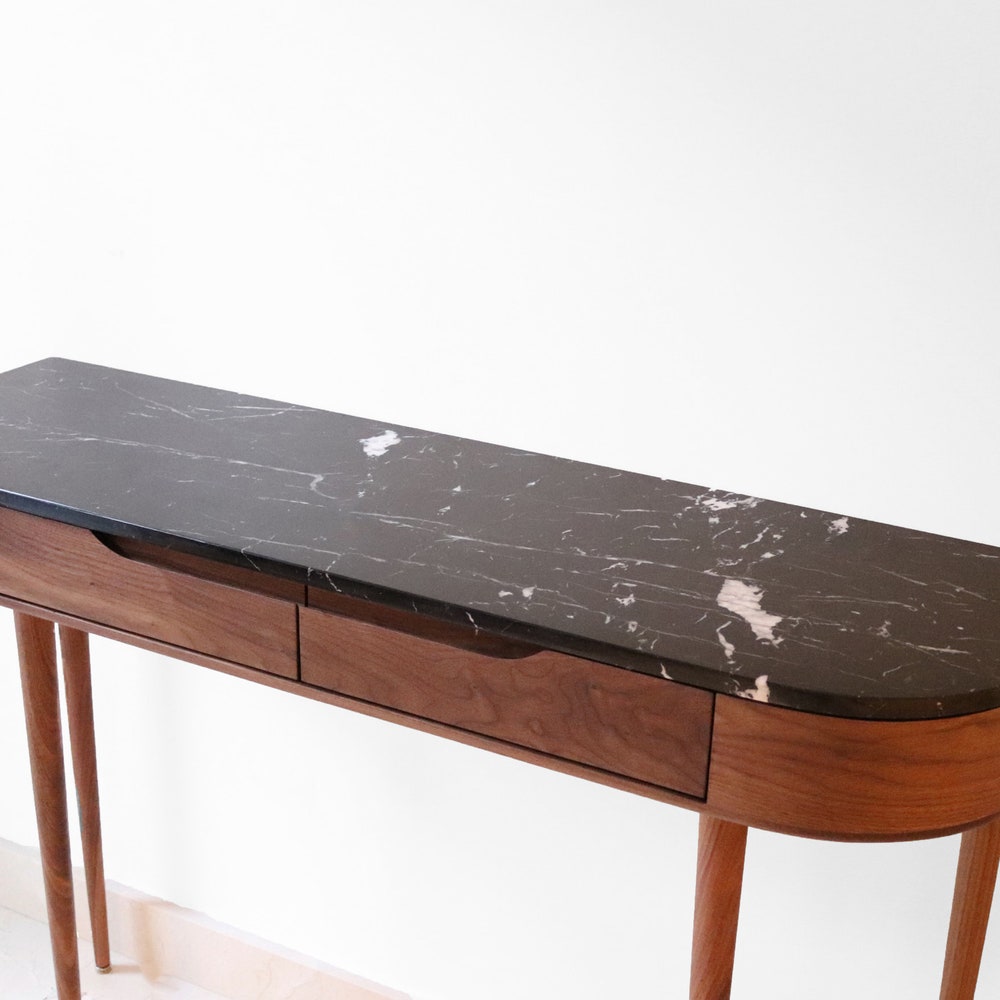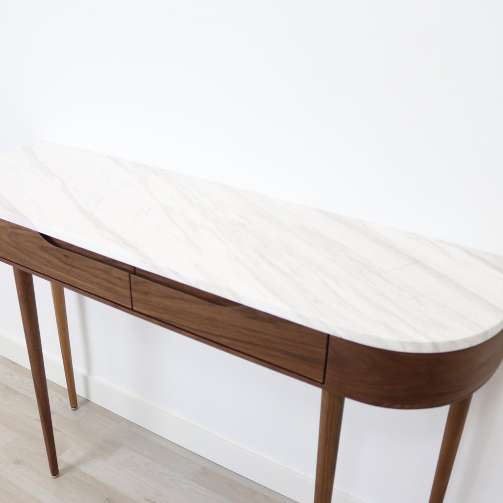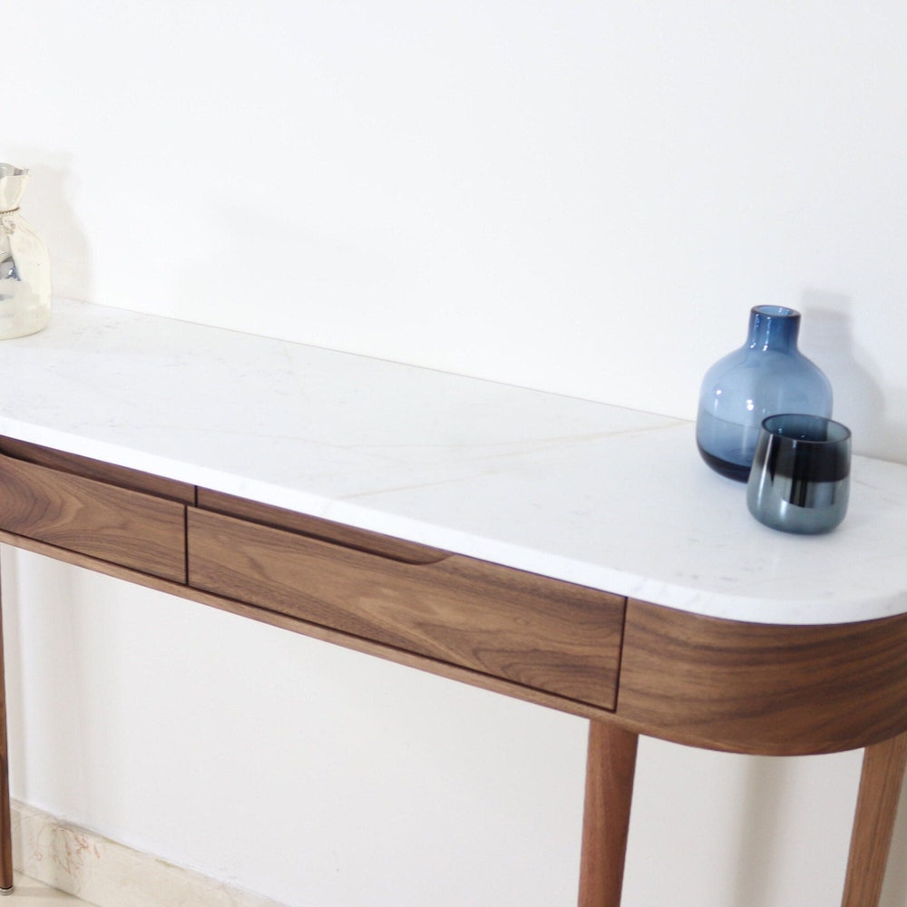 Console Table with 2 drawers and 4 Legs in solid American Oak or Walnut with Marble top