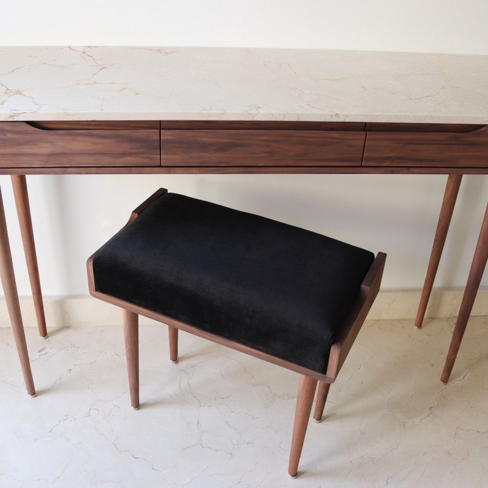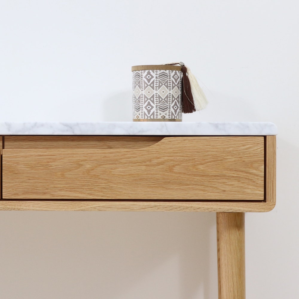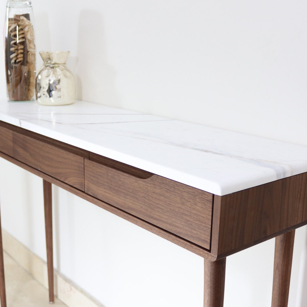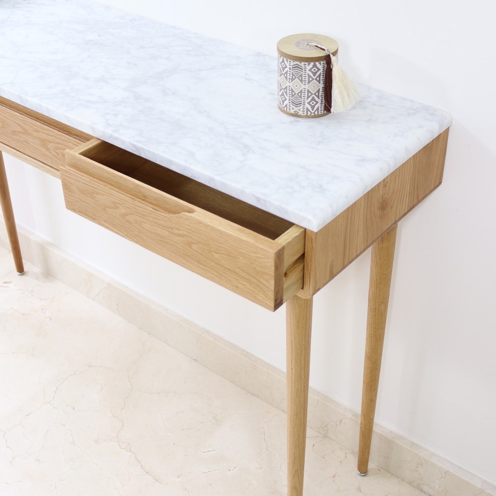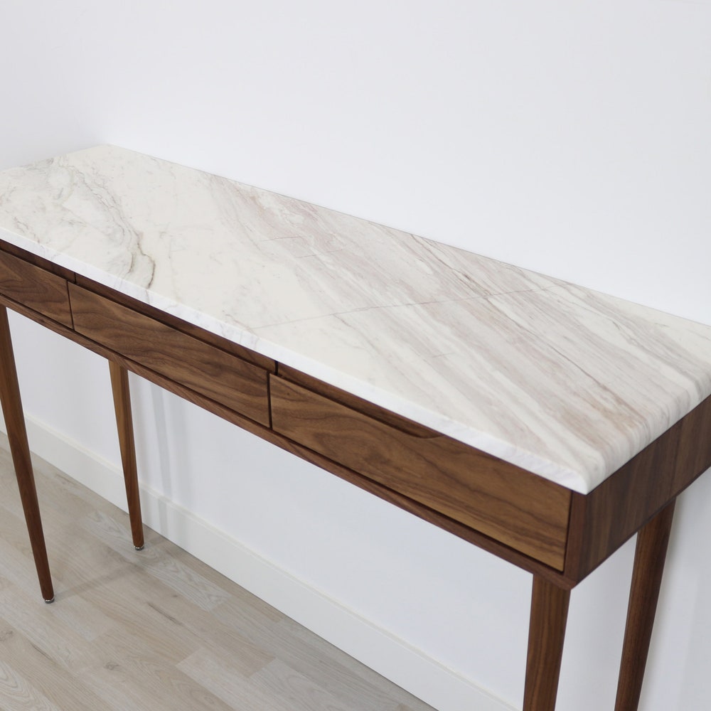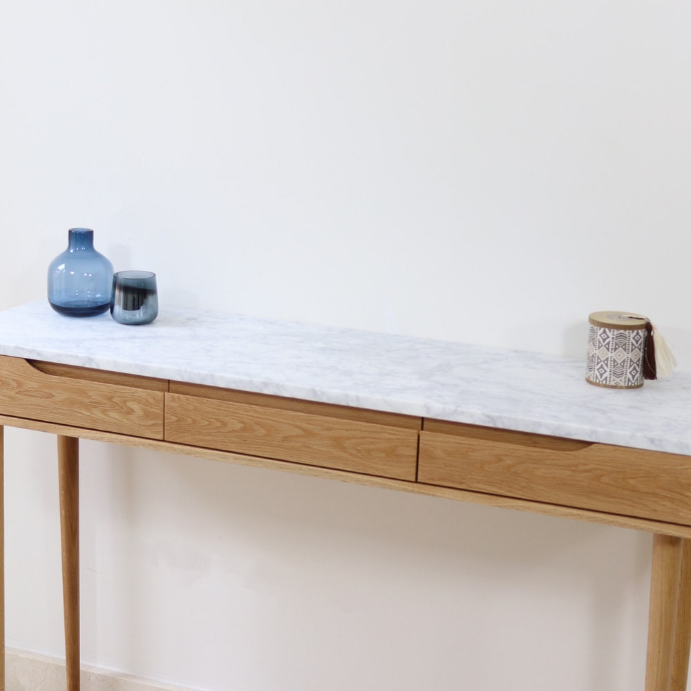 Console table with 3 drawers and 4 Legs in solid American Oak or Walnut with Marble top