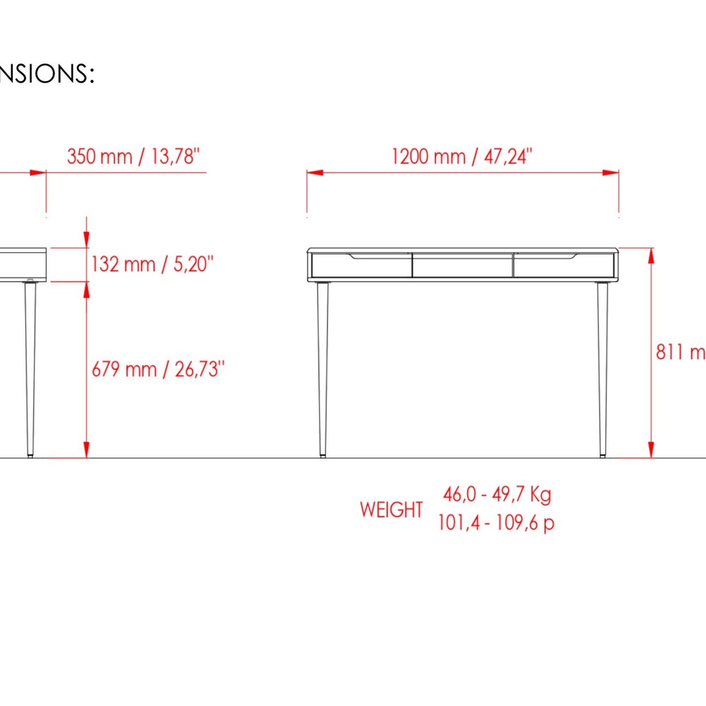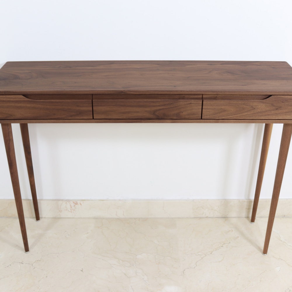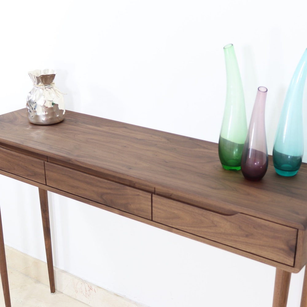 Console table with 3 drawers and 4 Legs in solid American Oak or Walnut