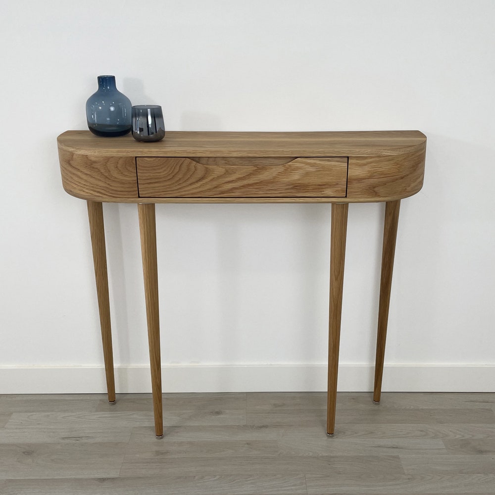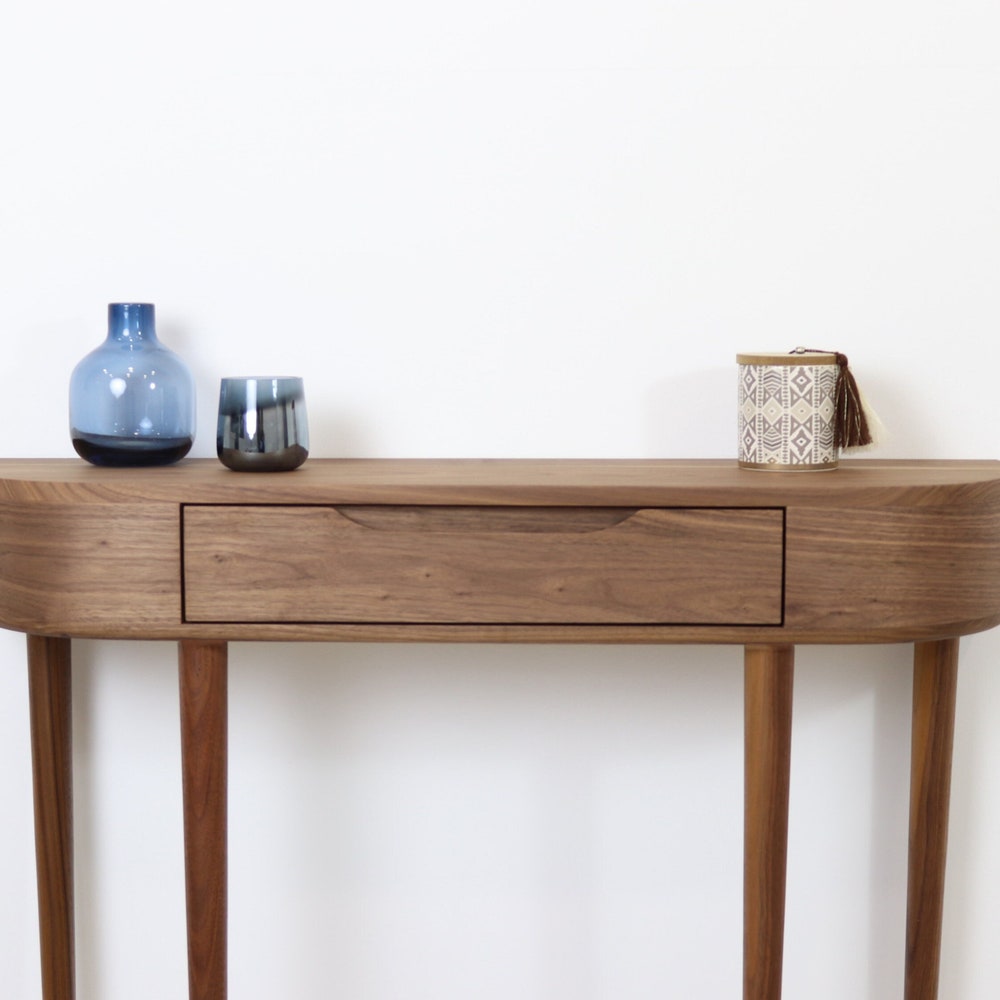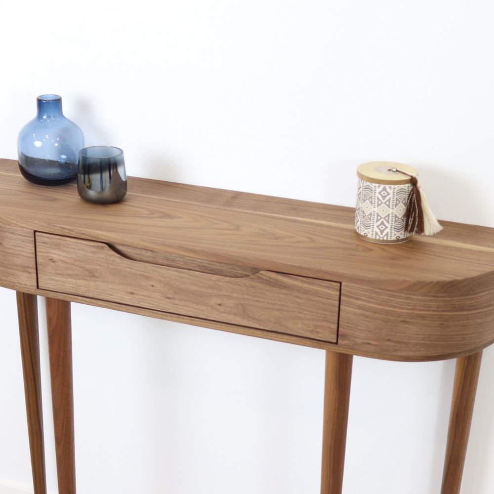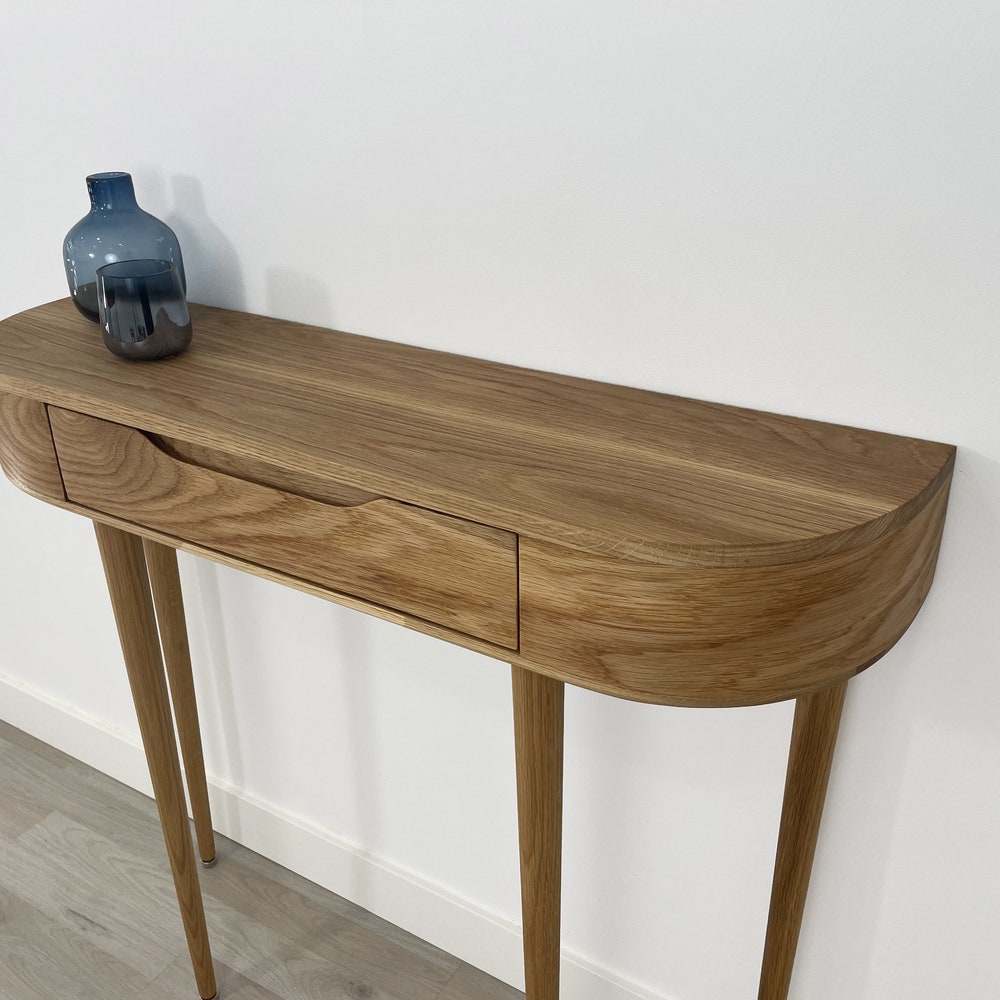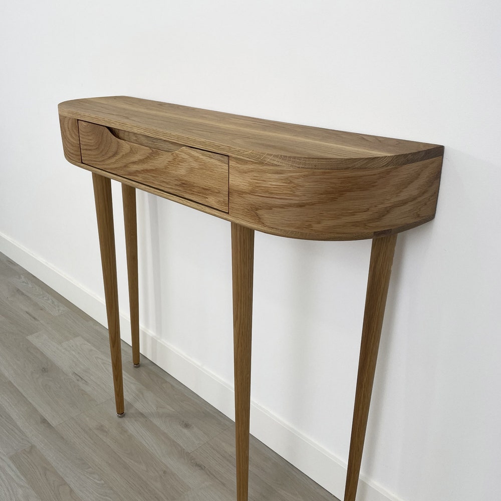 Console Table with drawer and 4 Legs in solid American Oak or Walnut