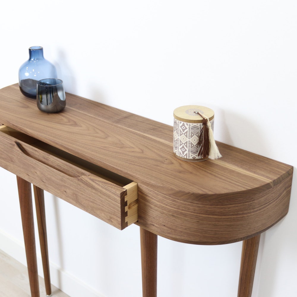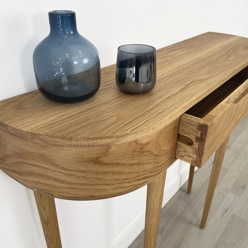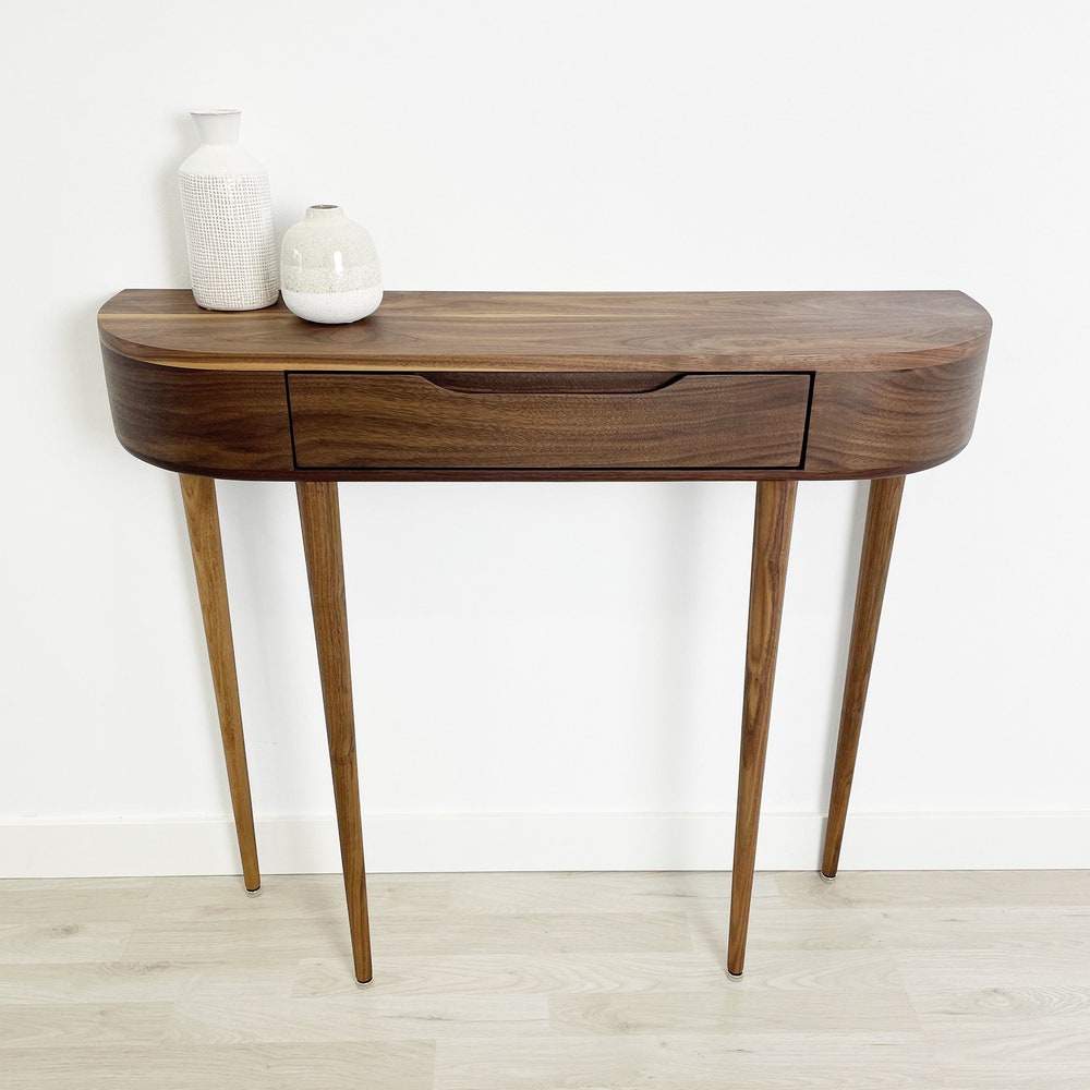 Console Table with drawer and 4 Legs in solid American Oak or Walnut