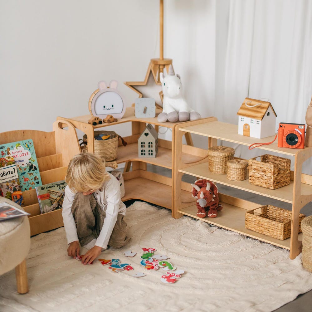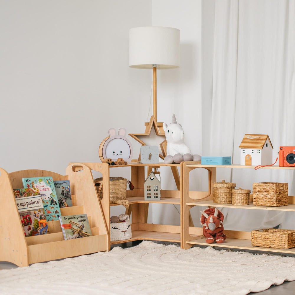 Corner 3 Tier Shelf for Nursery, Preschool Classroom Shelves, Montessori Furniture, Toy Storage, Playroom Space Organization, Kids Bookshelf