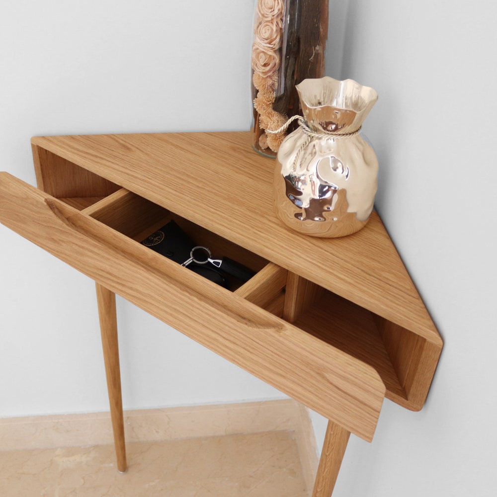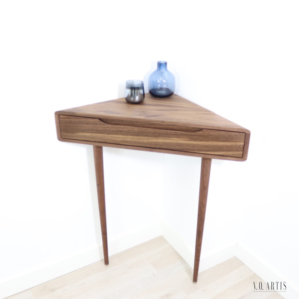 Corner console table in solid Oak or Walnut