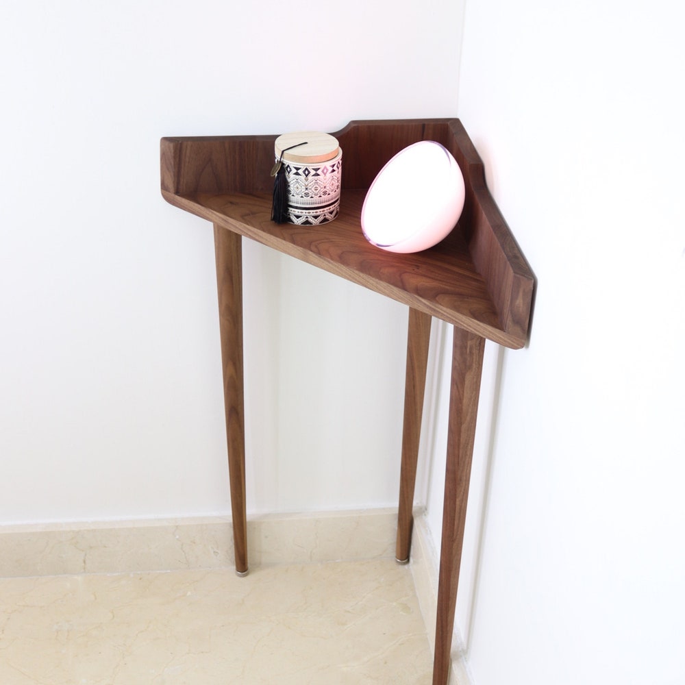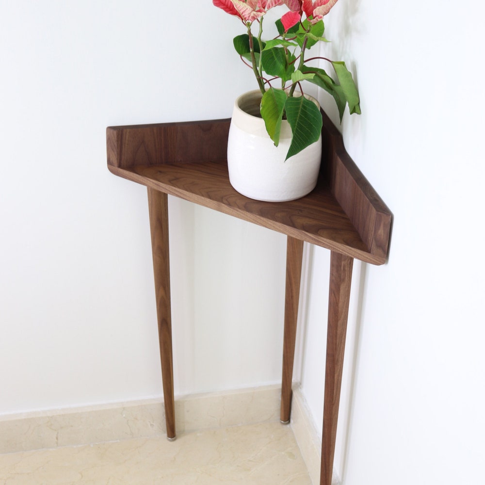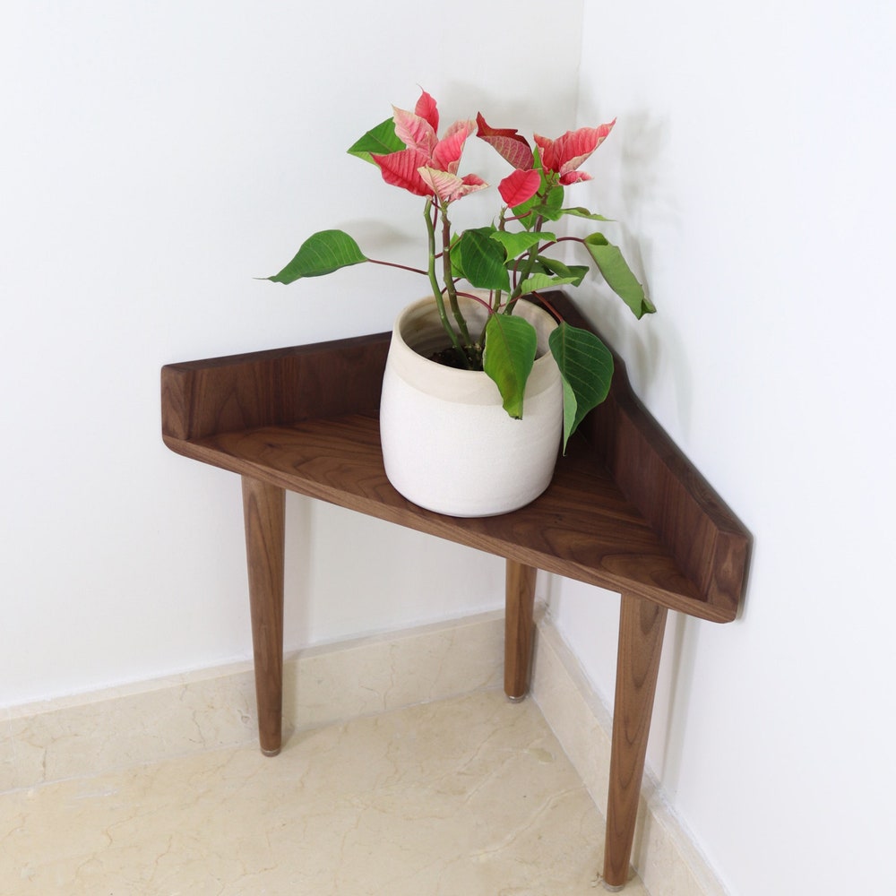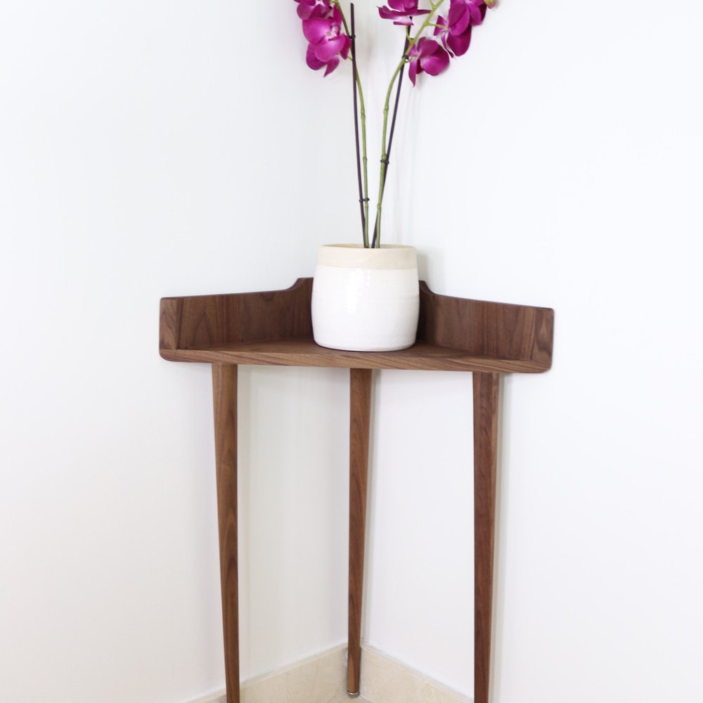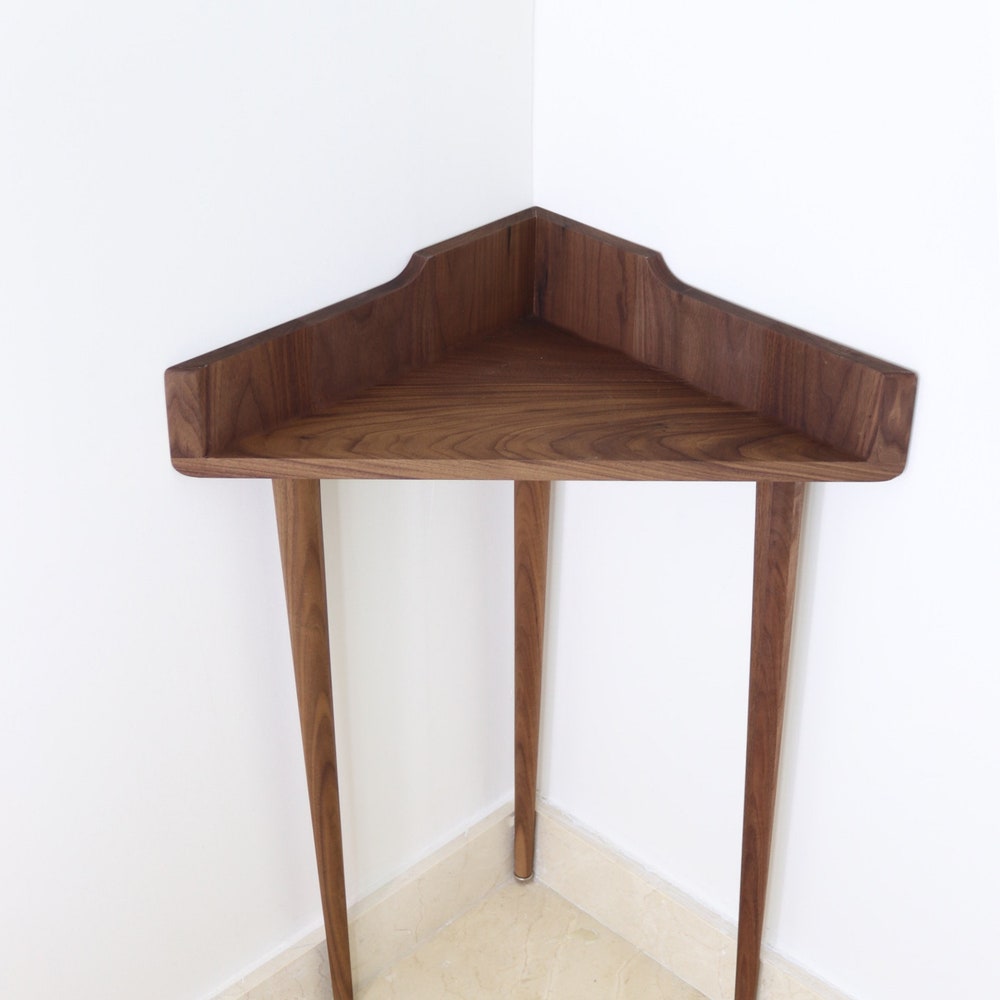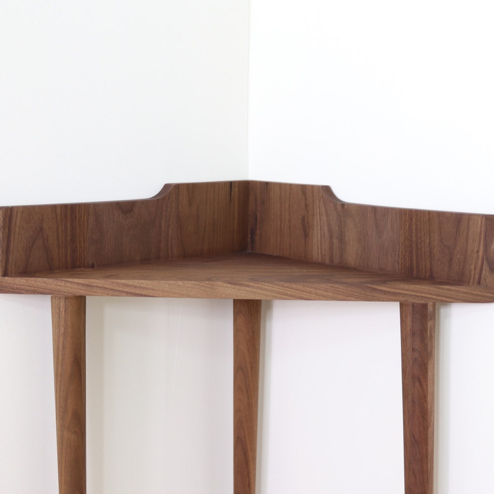 Corner Table, Corner shelf, corner furniture in solid American Walnut or Oak wood