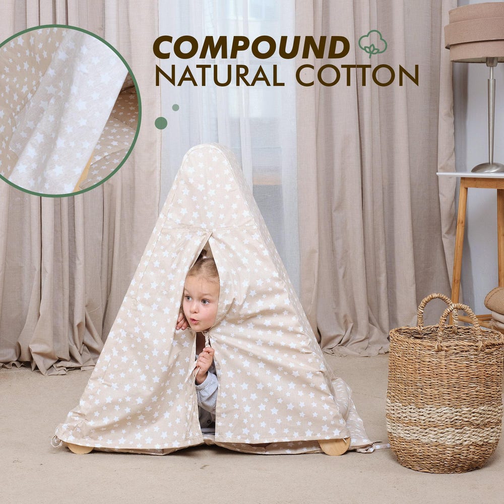 Tent cover and mat made of natural cotton provide comfort and safety, turning your triangle ladder into a multifunctional and fascinating play complex.