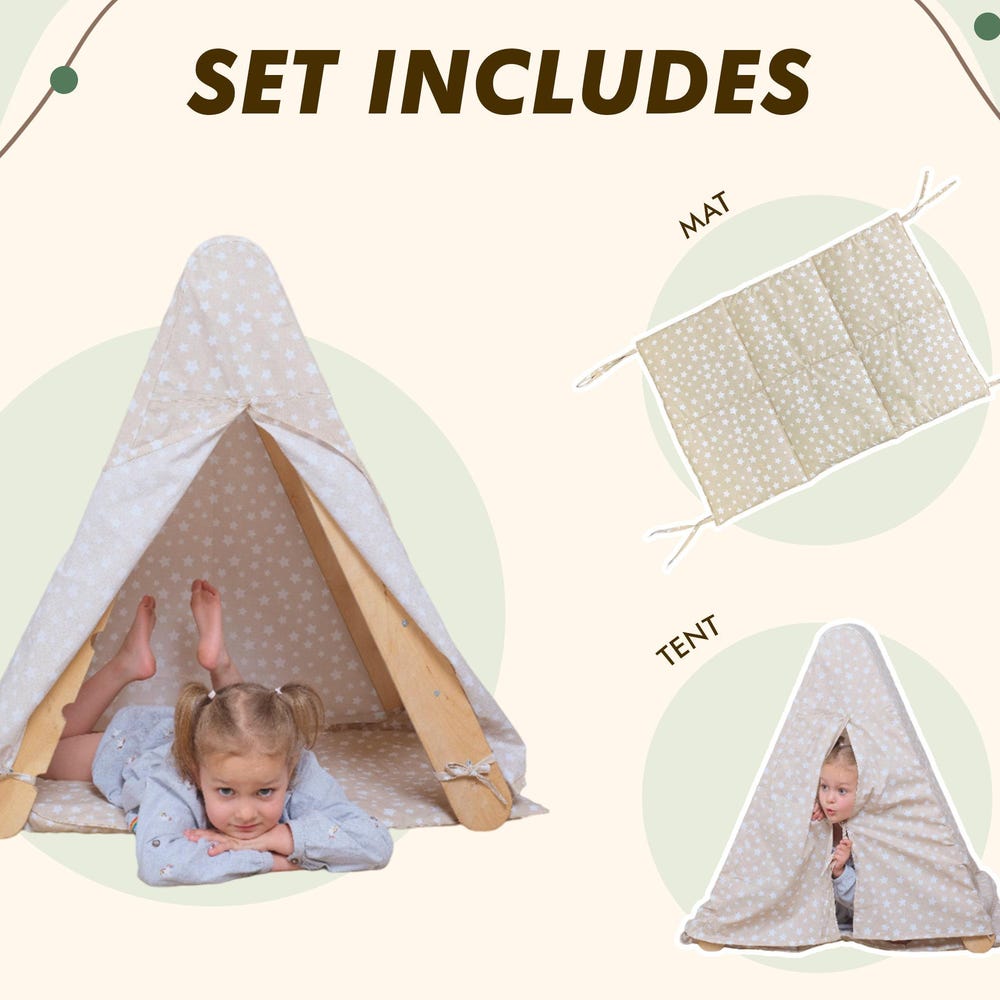 Cotton Play Tent Cover with Mat for Climbing Triangle Ladder – Kids Teepee – Imaginative Playhouse for kids – Birthday gift for girls