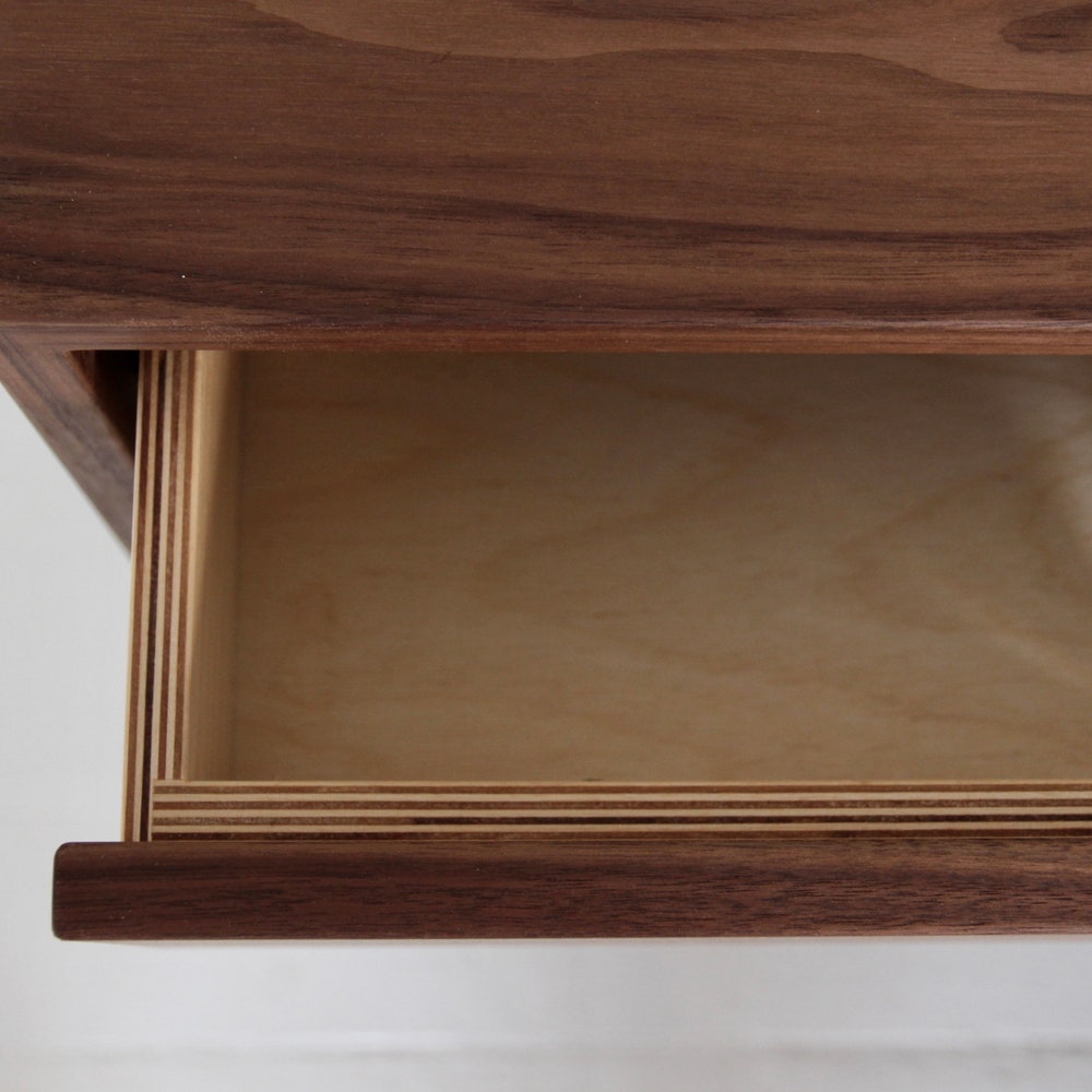 The drawers are built from solid Hard Maple with a solid Walnut front to match the nightstand.