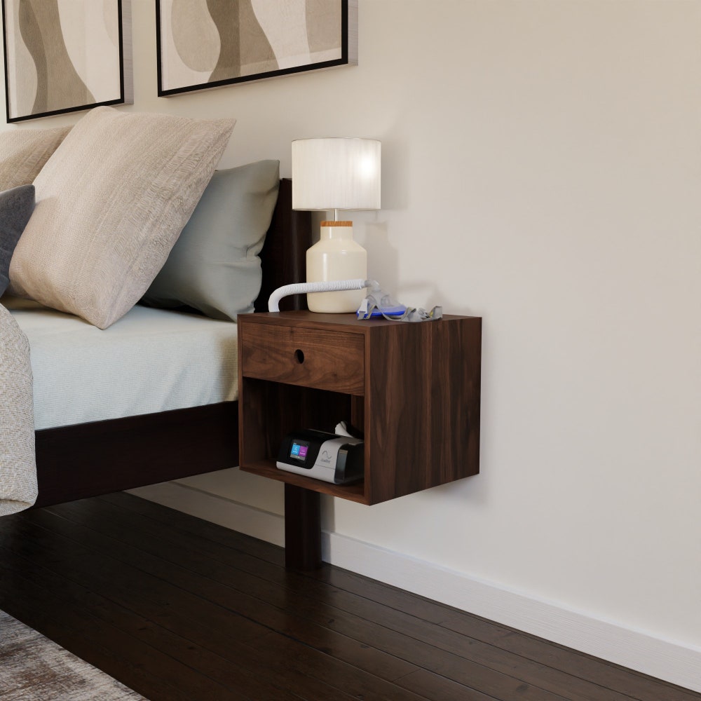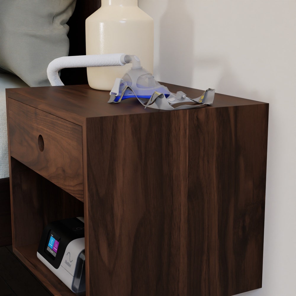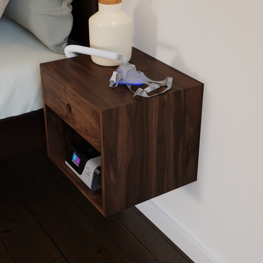 CPAP Floating Nightstand in Solid Walnut, Bedside Table with Drawer