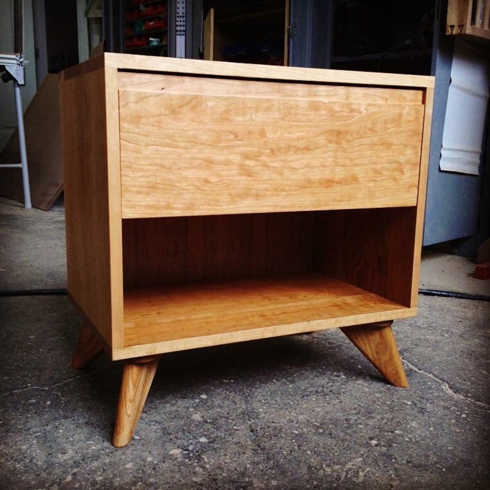 Apollo Side Table & Colorful Drawer Options, Handmade Wood Mid Century Modern – Oak, Cherry, Walnut or Maple, Retro Style, Bedroom Furniture