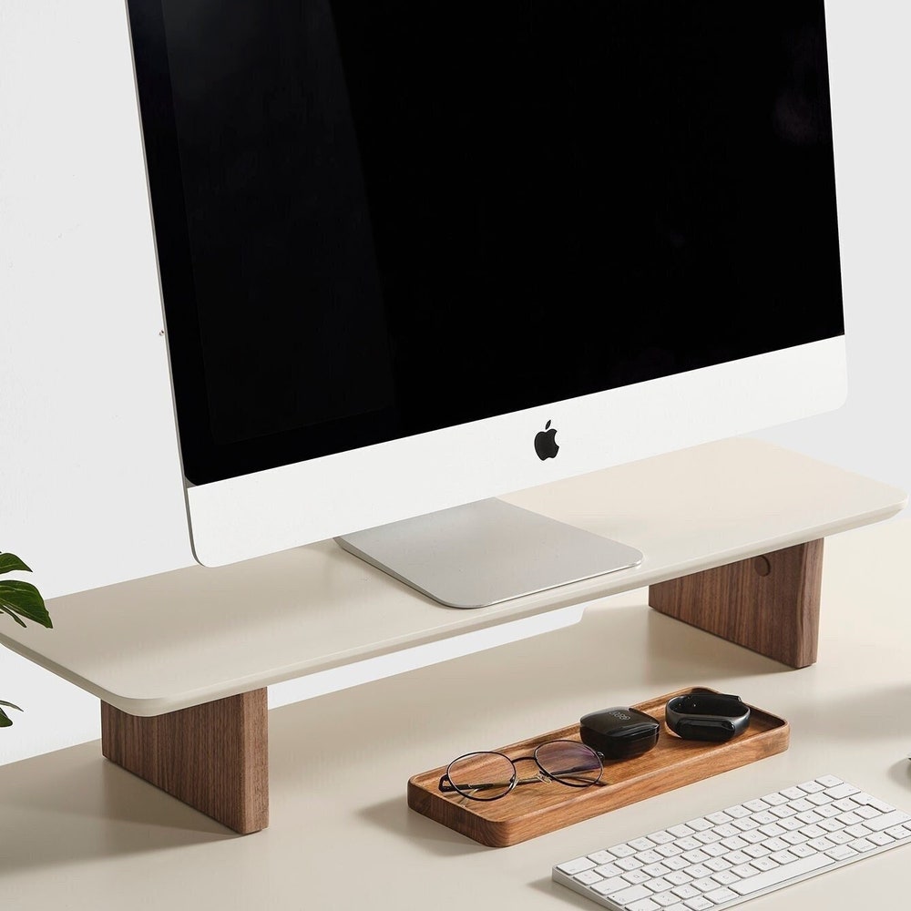 Upgrade your workspace with this cream wooden monitor stand for a cleaner, more ergonomic, and stylish desk setup! ✨