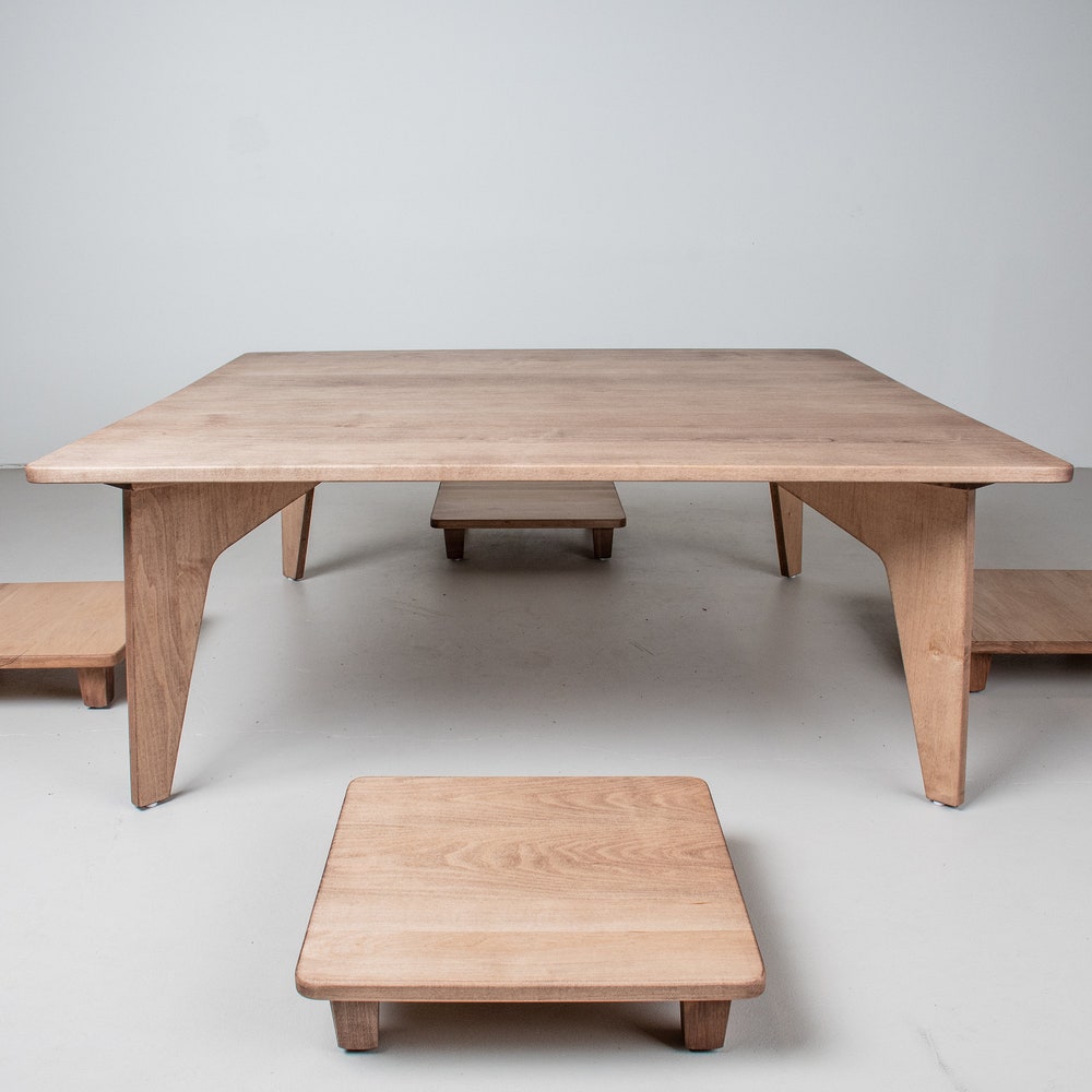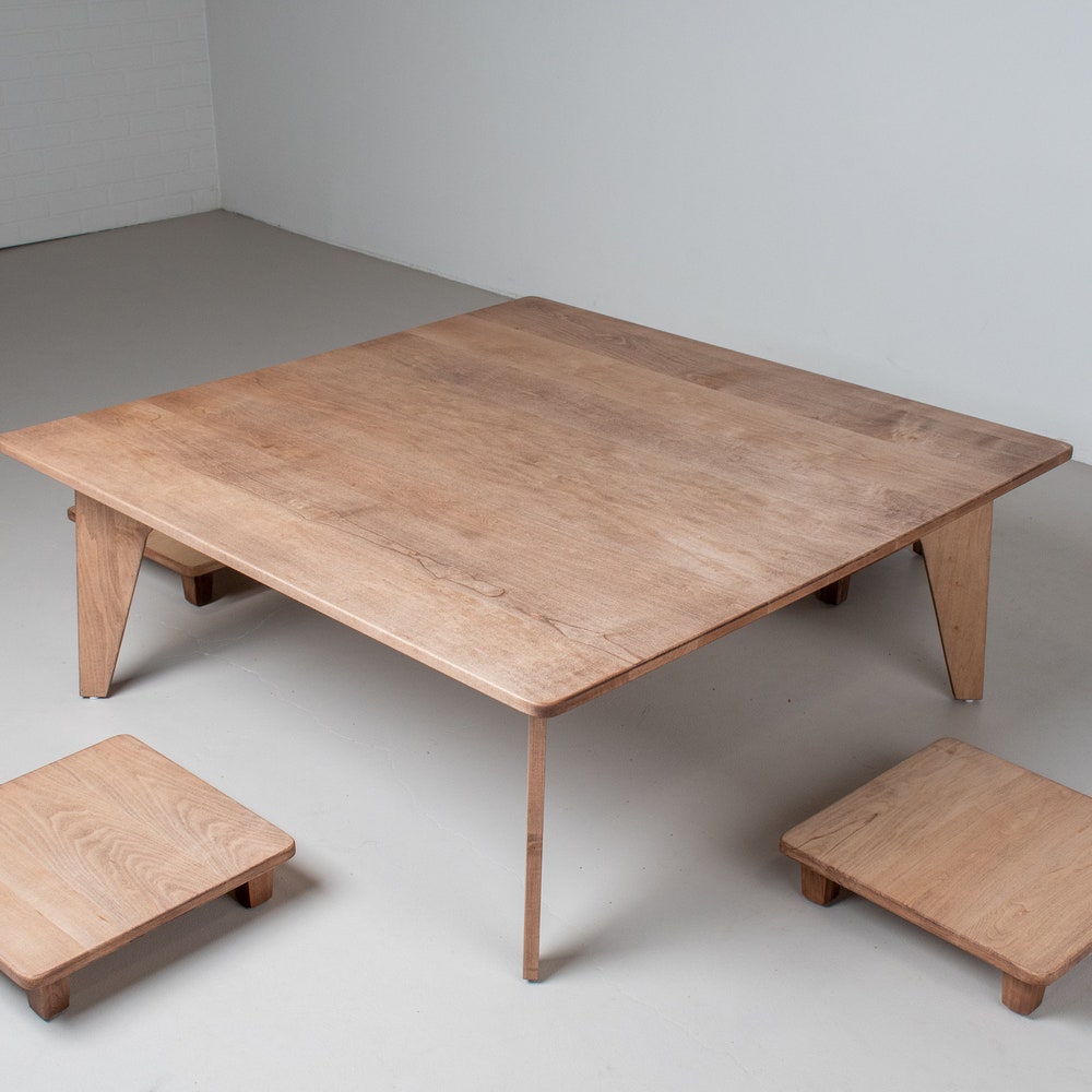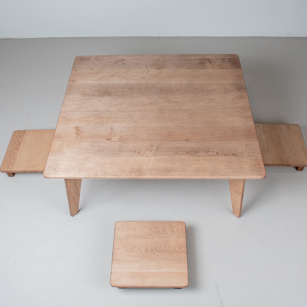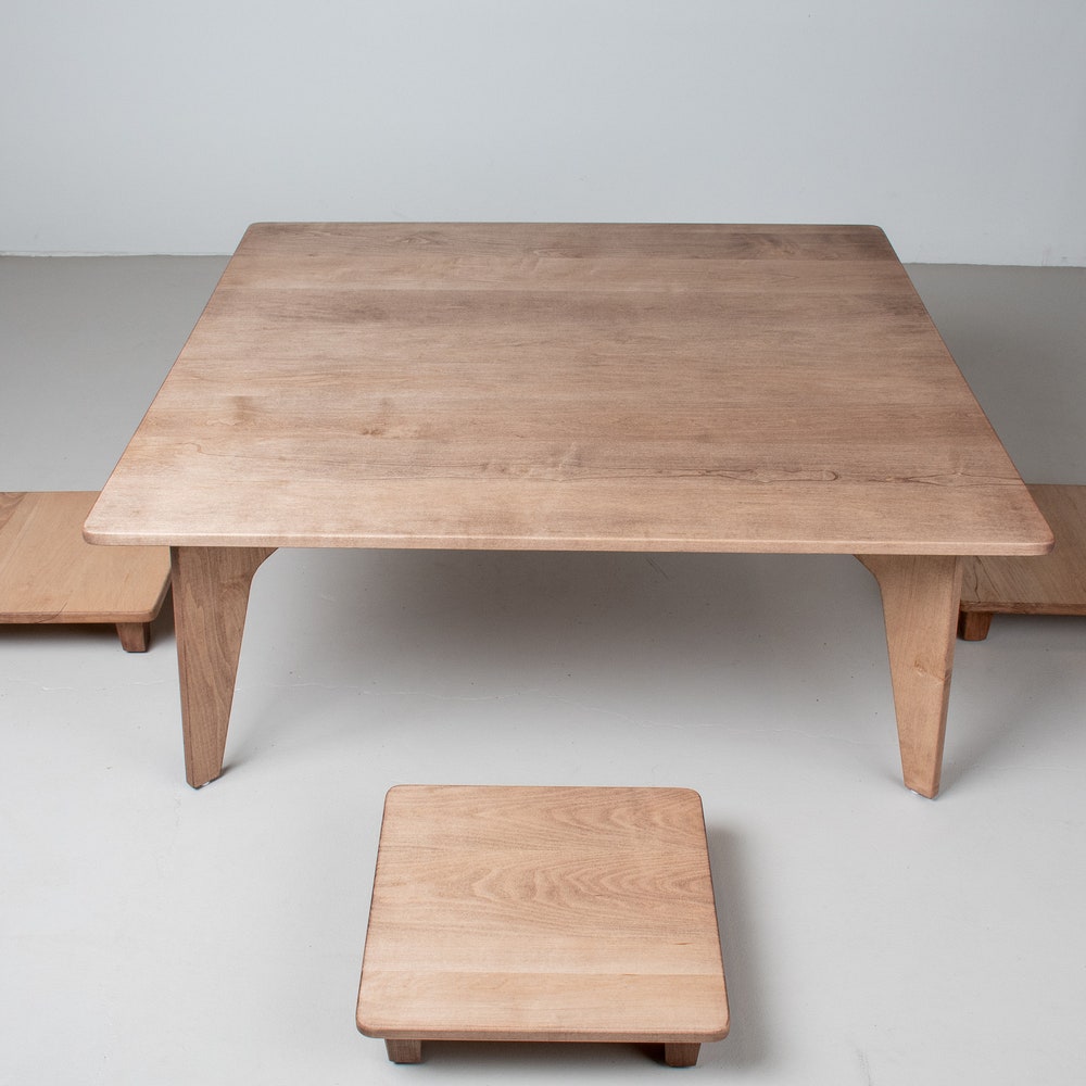 Custom Coffee Table Height Dining Set, Maple Wood Coffee Table with Stools, Modern Coffee Table Set, Custom Coffee Table and Bench Seats