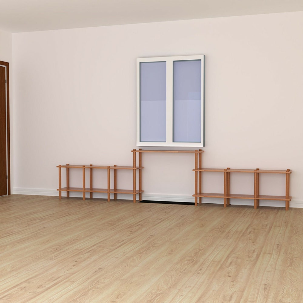 This handmade minimalist triple shelf combines elegance and functionality in your living room. Crafted from solid wood with rounded corners, this versatile piece is the perfect choice to complete your modern home decor. This multipurpose item offers an elegant surface for use as both a bookshelf or a TV unit in your living room, while also providing an ideal solution for keeping your shoes neatly organized. Its handmade nature ensures that each piece is unique. This wooden shelf is an excellent choice for those seeking both functionality and aesthetics.