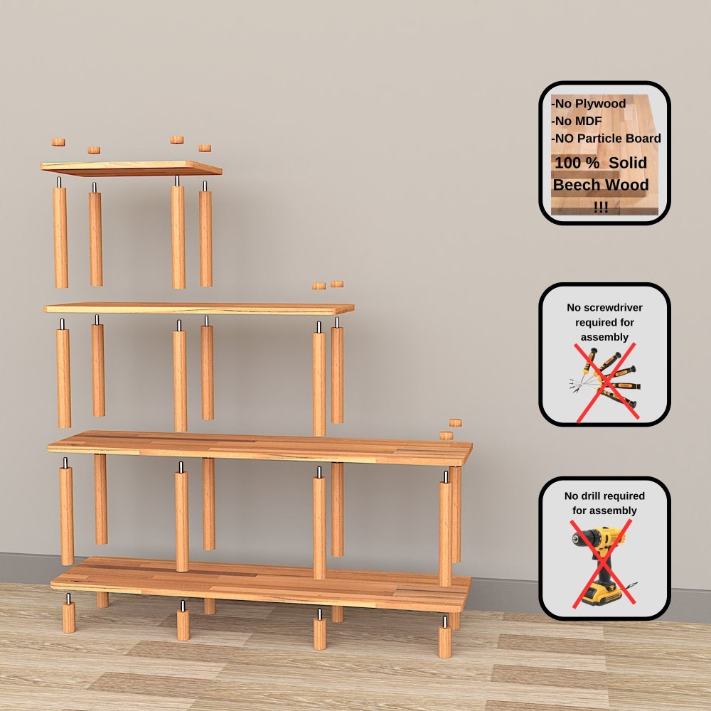 Our products are fully customizable. You can modify the heights, widths, and shelf gaps according to your intended use. You can increase or decrease the number of shelves as well. We would be happy to assist you with this.