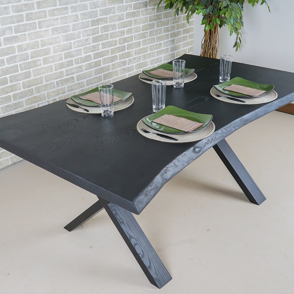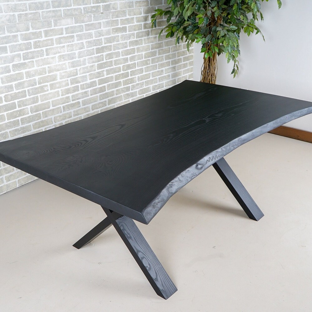 Custom Dining Table, Bookmatch Live Edge Table with Black Finish, Natural Wood Dining Table, Black Live Edge Table, Solid Wood Dining Table