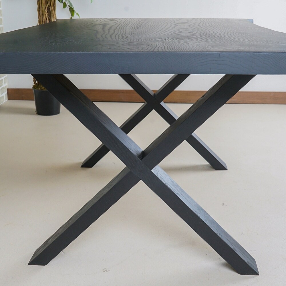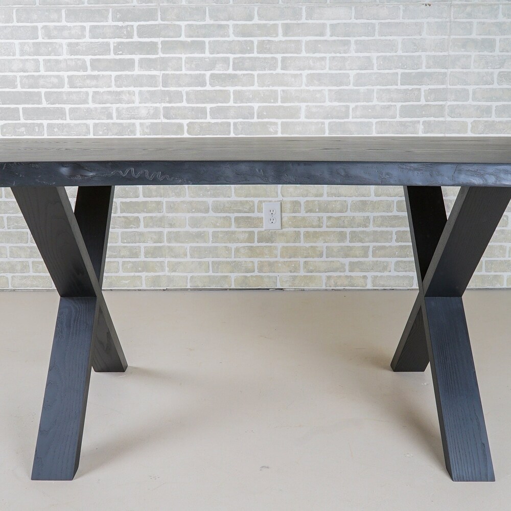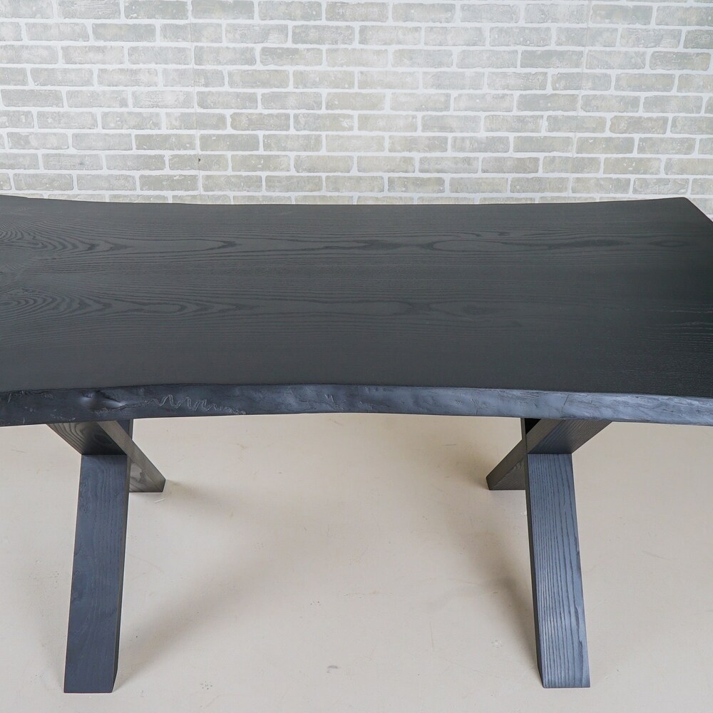 This custom dining table is made with bookmatched slabs of ash wood. It is the perfect table because two sides will be symmetrical. The two slabs come from the same tree and were beside each other in the tree. This makes for a pleasing design. As with all of our bookmatch tables, please contact us if you are interested in one. We build every table to order so there are many ways to make this table perfect for you.