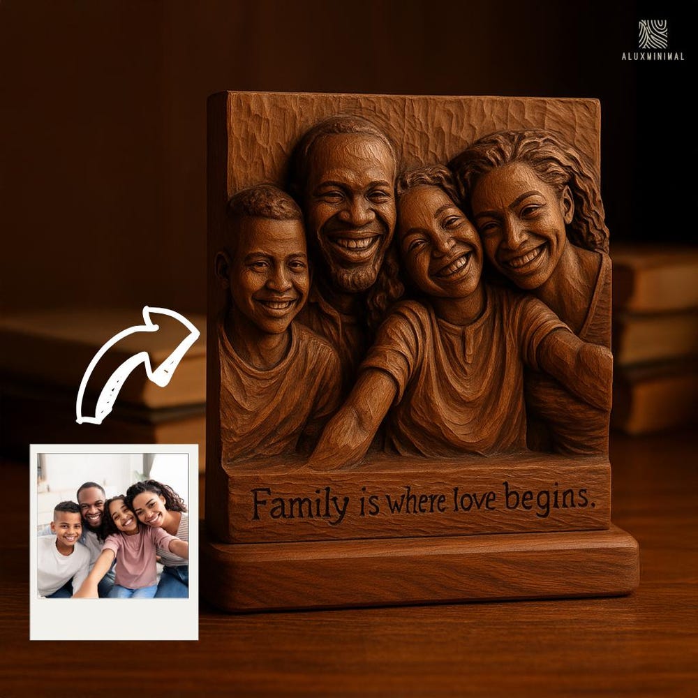 Turn a cherished photo into a stunning hand-carved wooden relief — a piece of art that captures love, connection, and memory in every chisel mark. Whether it’s a family moment, wedding memory, or celebration of life, this personalized wood sculpture brings timeless warmth into your space.