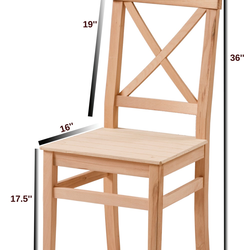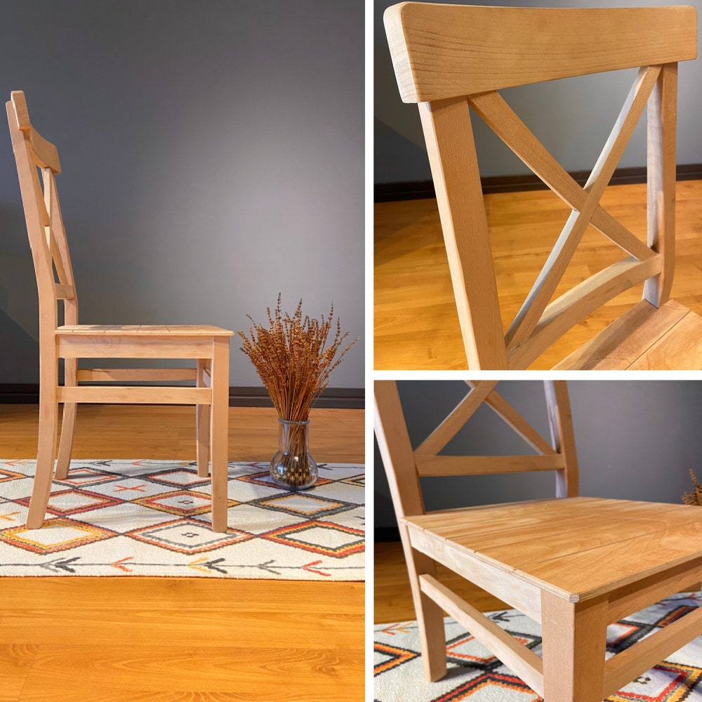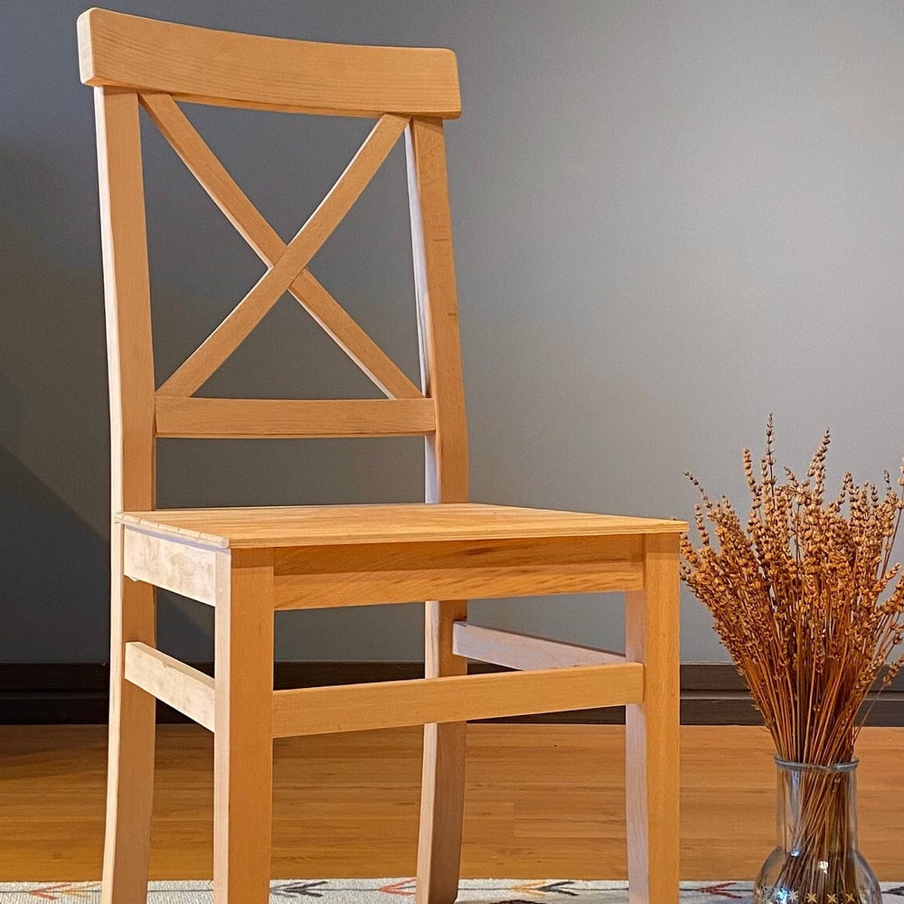 Handcrafted X back farmhouse dining chair made of 100% hornbeam, where you can customize the finish and add leather seat. If you want this chair with a painted or upholstered seat, please send us a message. You can buy the chair raw and paint it easily as a hobby. It is suitable for use as a dining chair, desk chair and bistro chair.