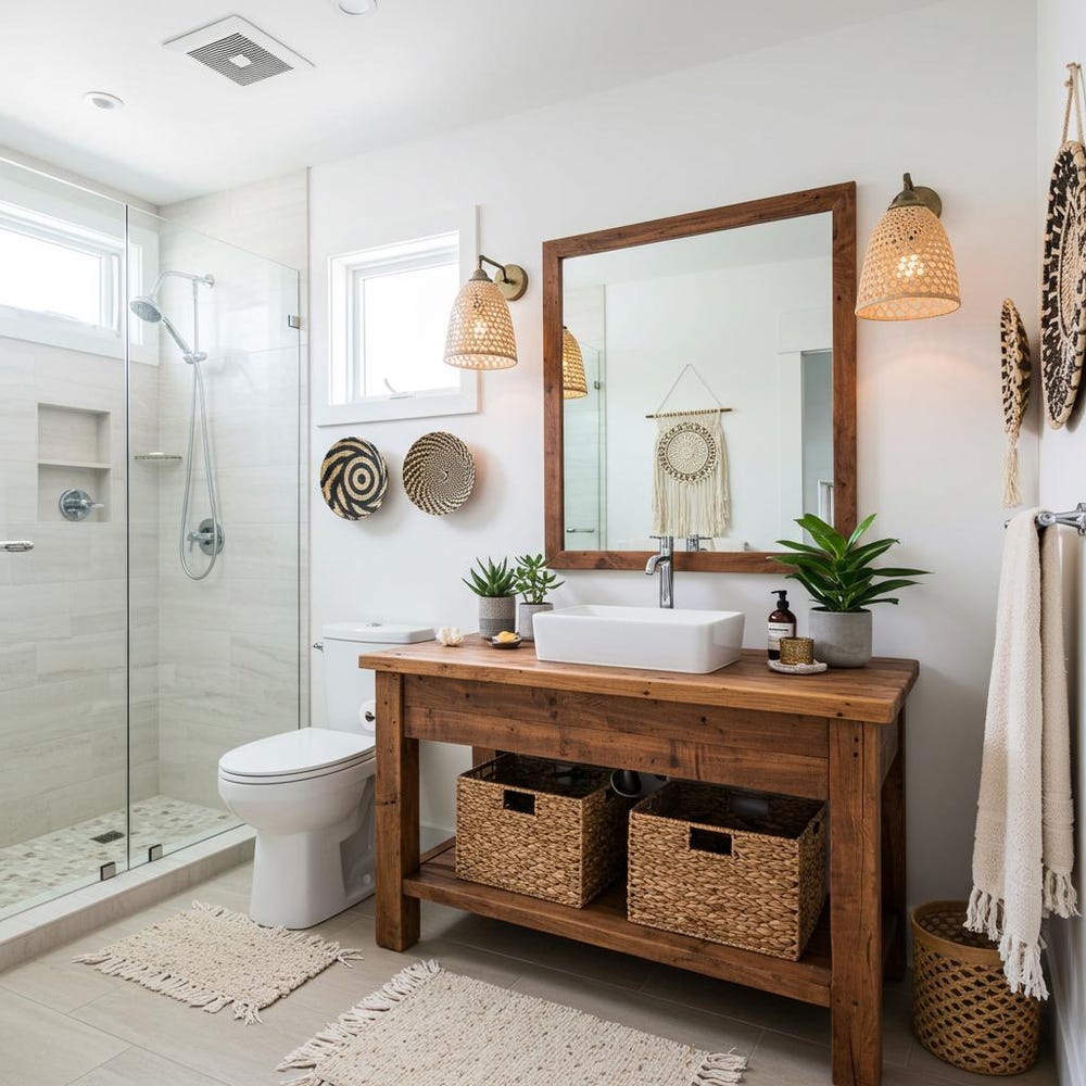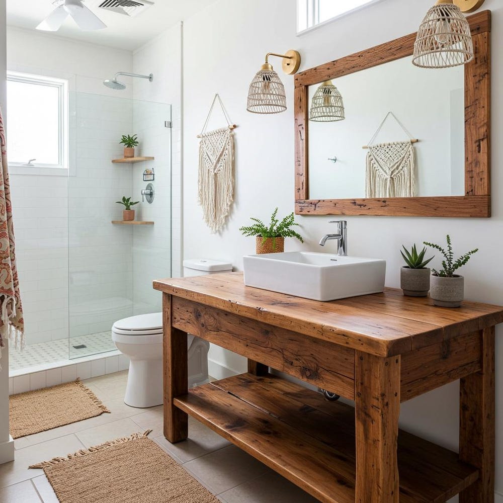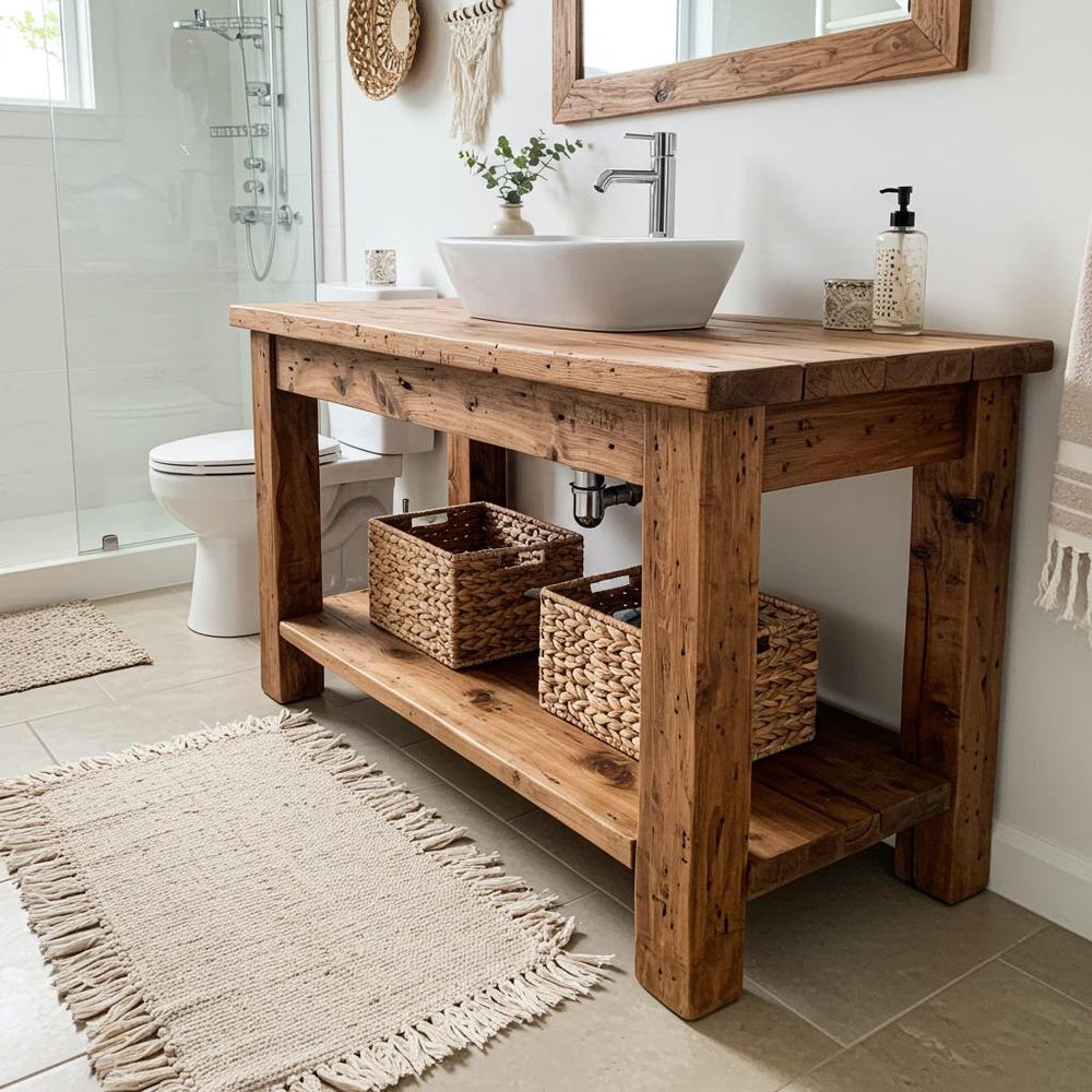 • Rustic Single-Sink Vanity: This single-sink vanity is designed to fit seamlessly in any bathroom and offers a rustic yet elegant aesthetic.