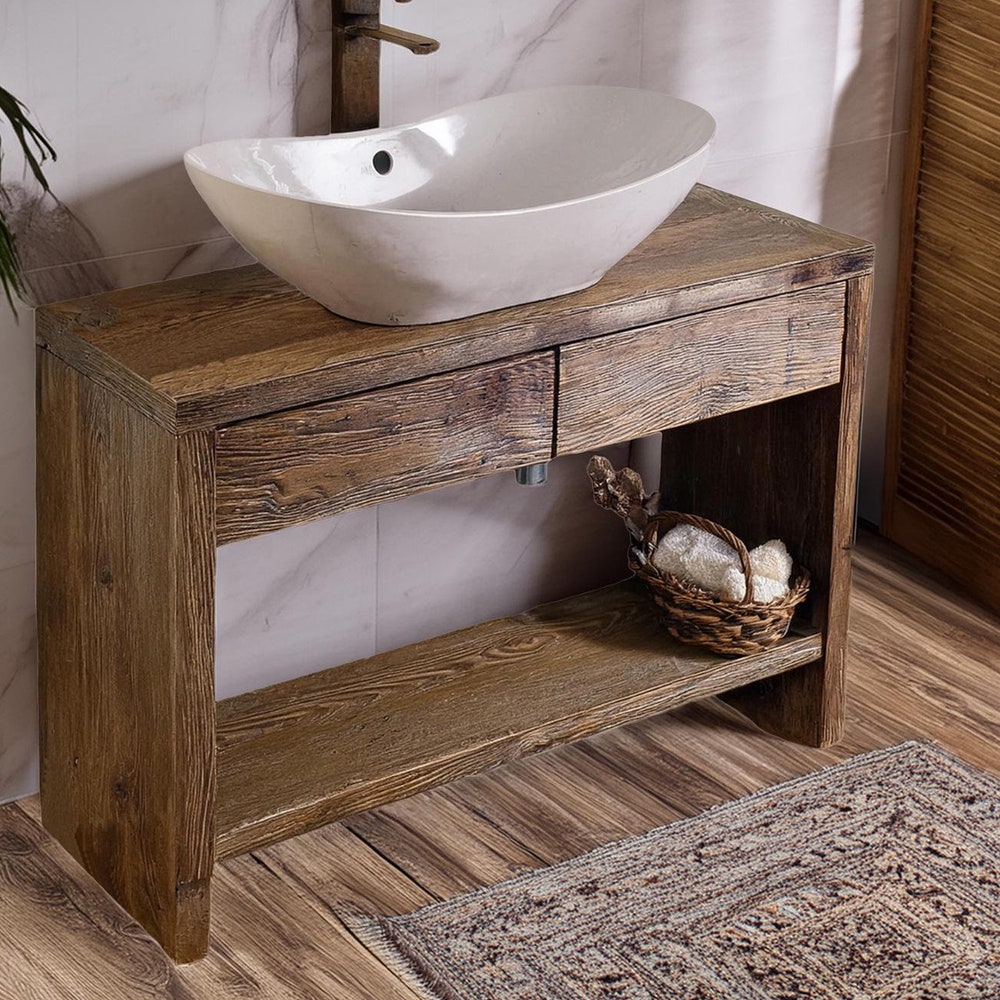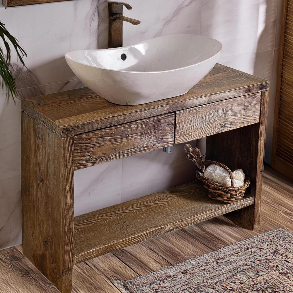 Custom Handmade Rustic Wooden Bathroom Vanity – Farmhouse Style Sink Shelf with Live Edge Reclaimed Handcrafted cabinet Wood Country Style