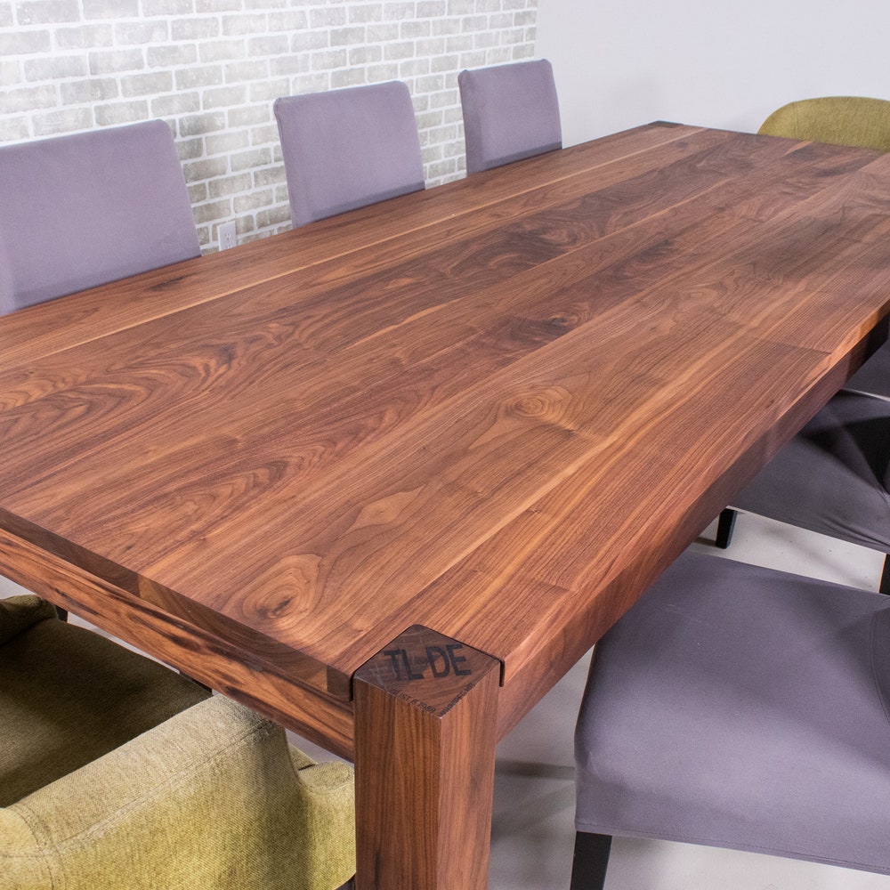 Custom Hardwood Table, Walnut Table with Leg Coming Through Tabletop, Modern Wood Parsons Table, Walnut Dining Table with Corner Post Leg