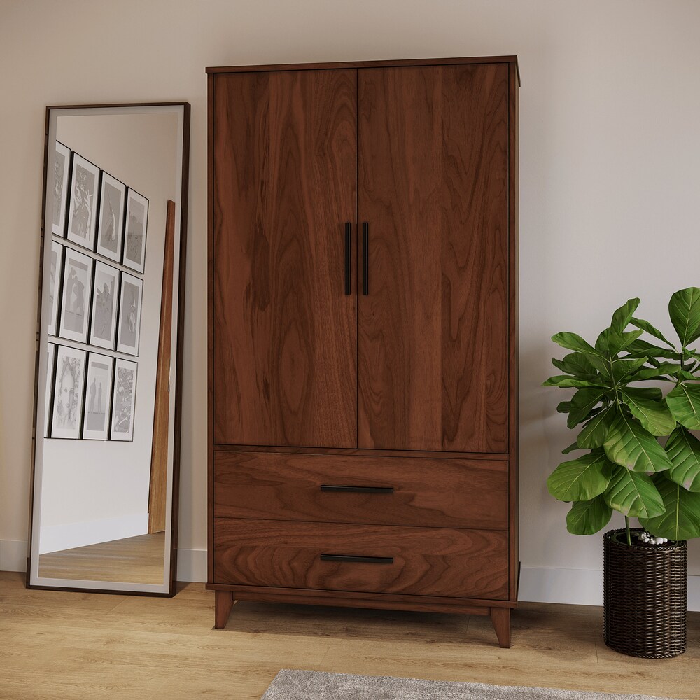 Our beautiful armoire is the perfect mid century wardrobe for your home. Each armoire is meticulously handcrafted using beautiful cherry, maple, white oak, or walnut sourced locally, which looks perfect in modern, contemporary, or mid-century décor. You’ll love the beautiful grain throughout, creating a warm and inviting atmosphere. You’ll love seeing the beautiful dark grain permeate through the wood, showcasing the work mother nature slowly did over time. It’s an heirloom piece that you’ll have in your home for years to come.