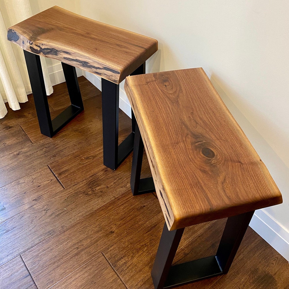 Good Wood Brothers Custom Made Black Walnut Live Edge Side/End Tables are carefully handcrafted and make for a beautiful addition in any living room. The live edge look and feel offers you a style that fills a room with elegance, warmth and comfort.