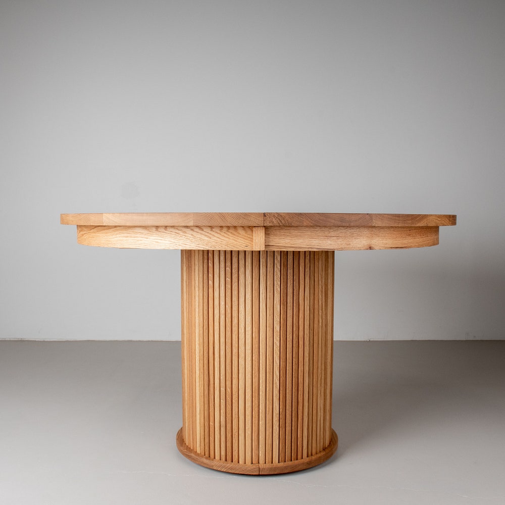 Custom Oak Dining Table, Extendable Round Wood Pedestal Dining Table, 60″ Round Extension Table , Custom Oak Pedestal Table