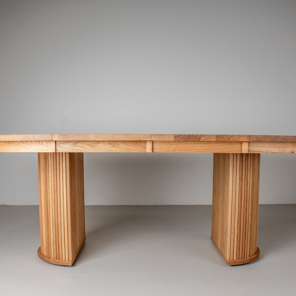 Please note that prices shown include shipping, duties and tariffs. All of our designs can be customized to suit your needs. This custom oak dining table features a round pedestal base that pulls apart. An extension table like this allows you to always be ready for a few extra people around the table. The core […]